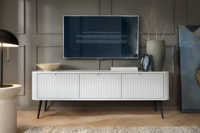 Szafka RTV Luna z drzwiczkami i ryflowanymi frontami to połączenie ponadczasowej estetyki i praktycznego zastosowania. Jej nowoczesna bryła wyróżnia się delikatną strukturą frontów, które nadają wnętrzu elegancji i wyjątkowego charakteru.