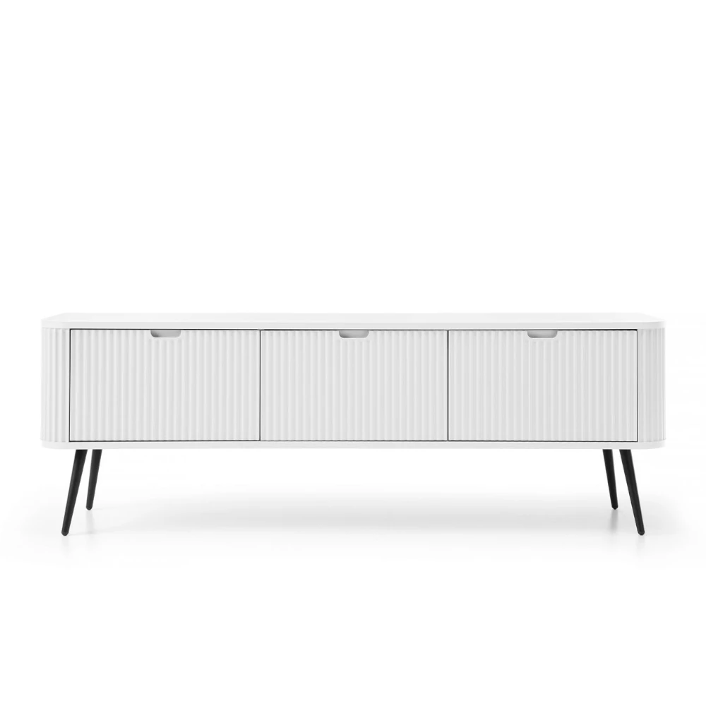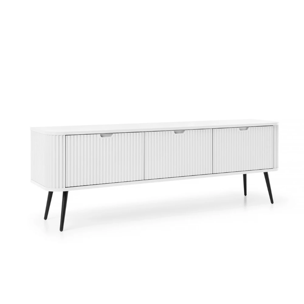 Biała szafka RTV Luna z drzwiczkami i ryflowanymi frontami