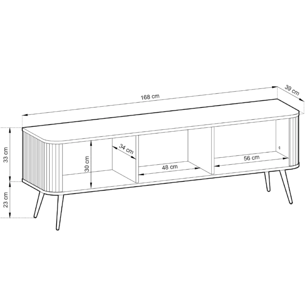 Szafka RTV Luna z drzwiczkami i ryflowanymi frontami to stylowy mebel, który łączy elegancję i funkcjonalność w nowoczesnej formie. Subtelne ryflowania, smukłe nóżki i minimalistyczny design sprawiają, że szafka idealnie wpisuje się w aranżacje w stylu loftowym, skandynawskim lub modern classic.