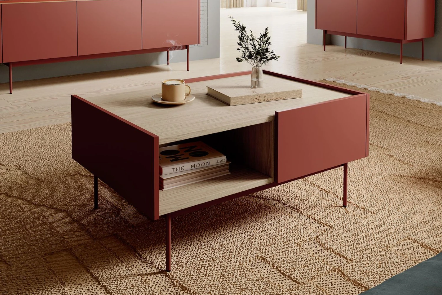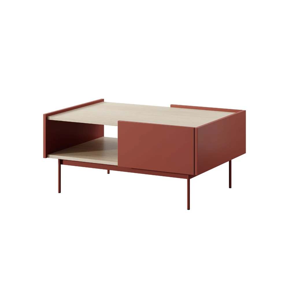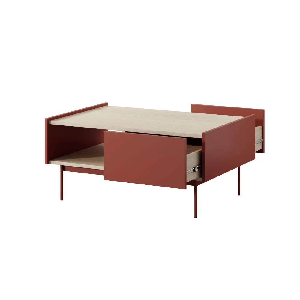 Czerwony stolik kawowy Avenor z szufladami