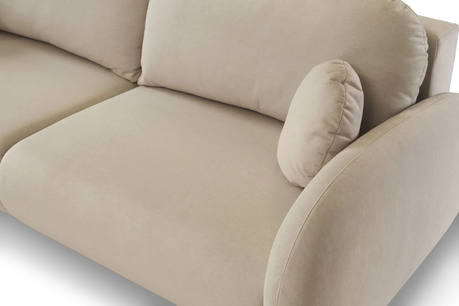 Cloudia to elegancka kanapa z funkcją spania, która łączy nowoczesny design z wysokim komfortem użytkowania. Miękka welurowa tkanina i zaokrąglone linie sprawiają, że sofa świetnie prezentuje się w salonie, a po rozłożeniu tworzy wygodne miejsce do spania dla dwóch osób.