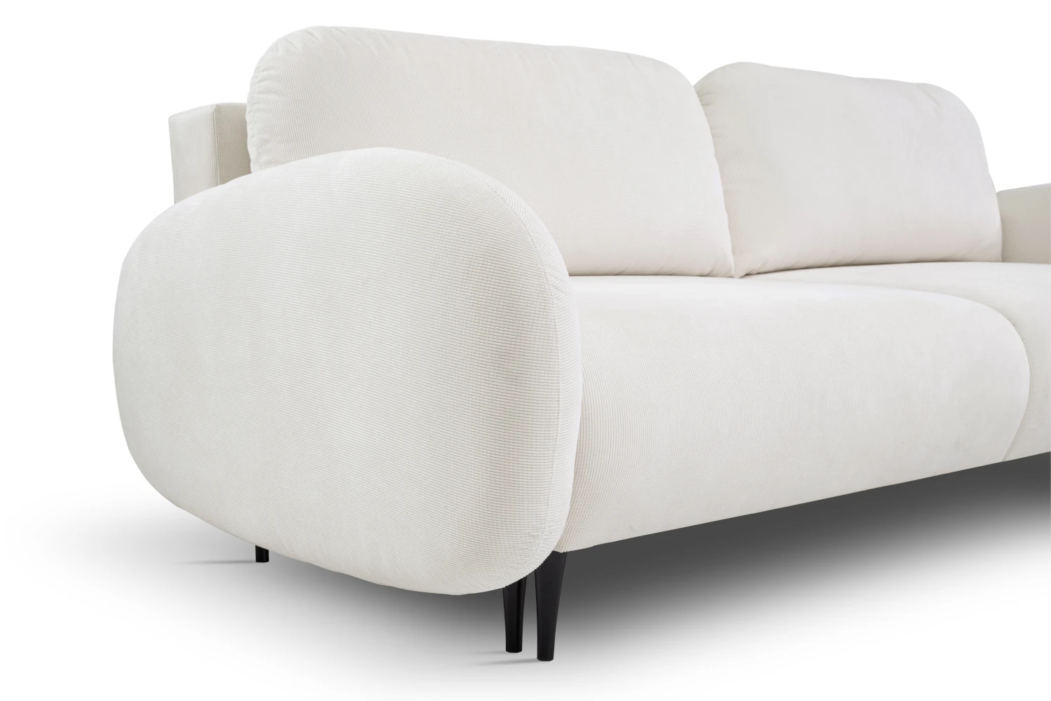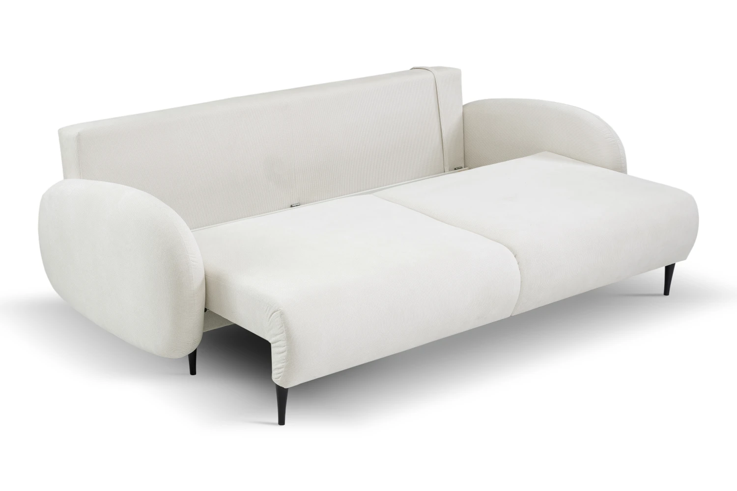 Wbudowany pojemnik na pościel pozwala wygodnie przechowywać kołdrę i poduszki, dzięki czemu Cloudia idealnie sprawdzi się zarówno w małych mieszkaniach, jak i w pokoju gościnnym.