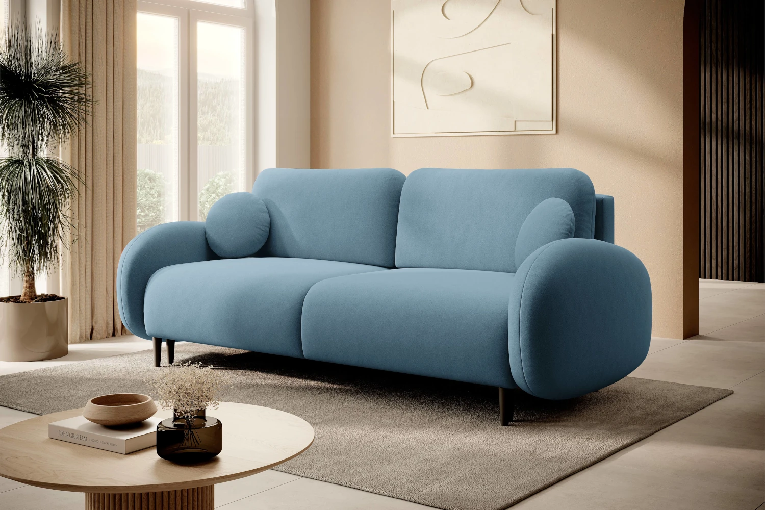 Kanapa z funkcją spania Cloudia to idealne rozwiązanie dla osób, które szukają nowoczesnej sofy rozkładanej do salonu. Delikatnie zaokrąglone kształty, miękkie siedzisko i wysokie oparcie tworzą przytulną strefę relaksu na co dzień, a po rozłożeniu - wygodne łóżko dla dwóch osób.
