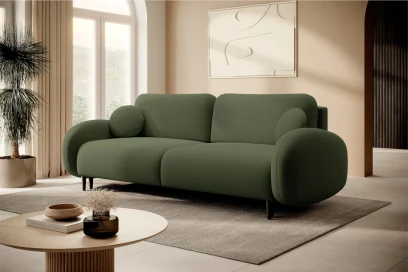Cloudia to elegancka kanapa z funkcją spania, która łączy nowoczesny design z wysokim komfortem użytkowania. Miękka welurowa tkanina i zaokrąglone linie sprawiają, że sofa świetnie prezentuje się w salonie, a po rozłożeniu tworzy wygodne miejsce do spania dla dwóch osób.