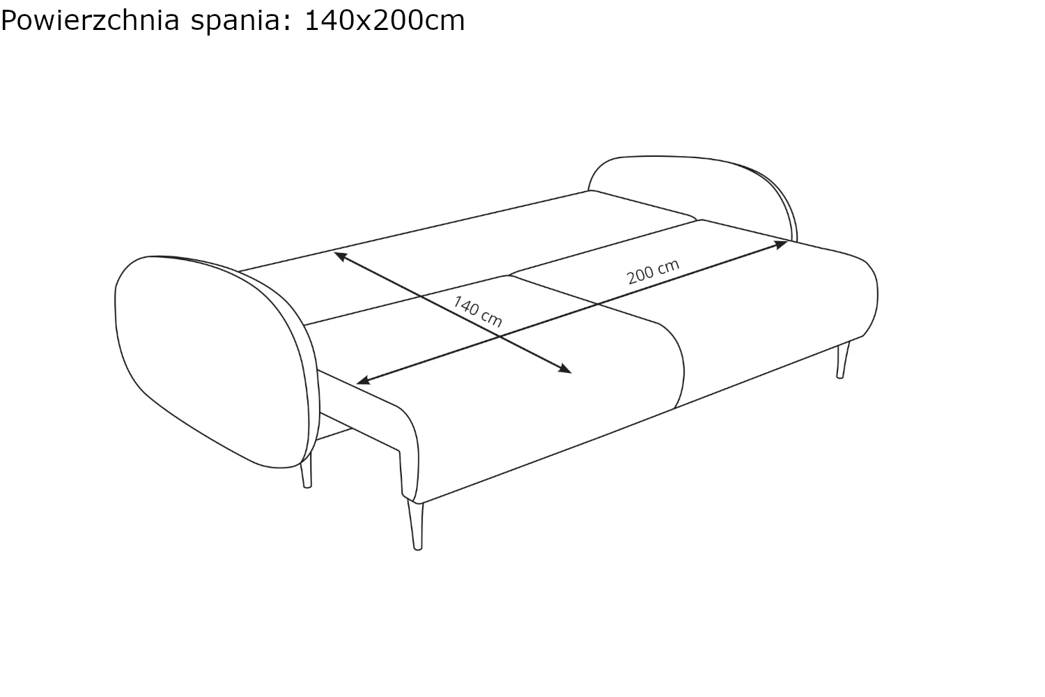 - Powierzchnia spania: 140x200 cm
