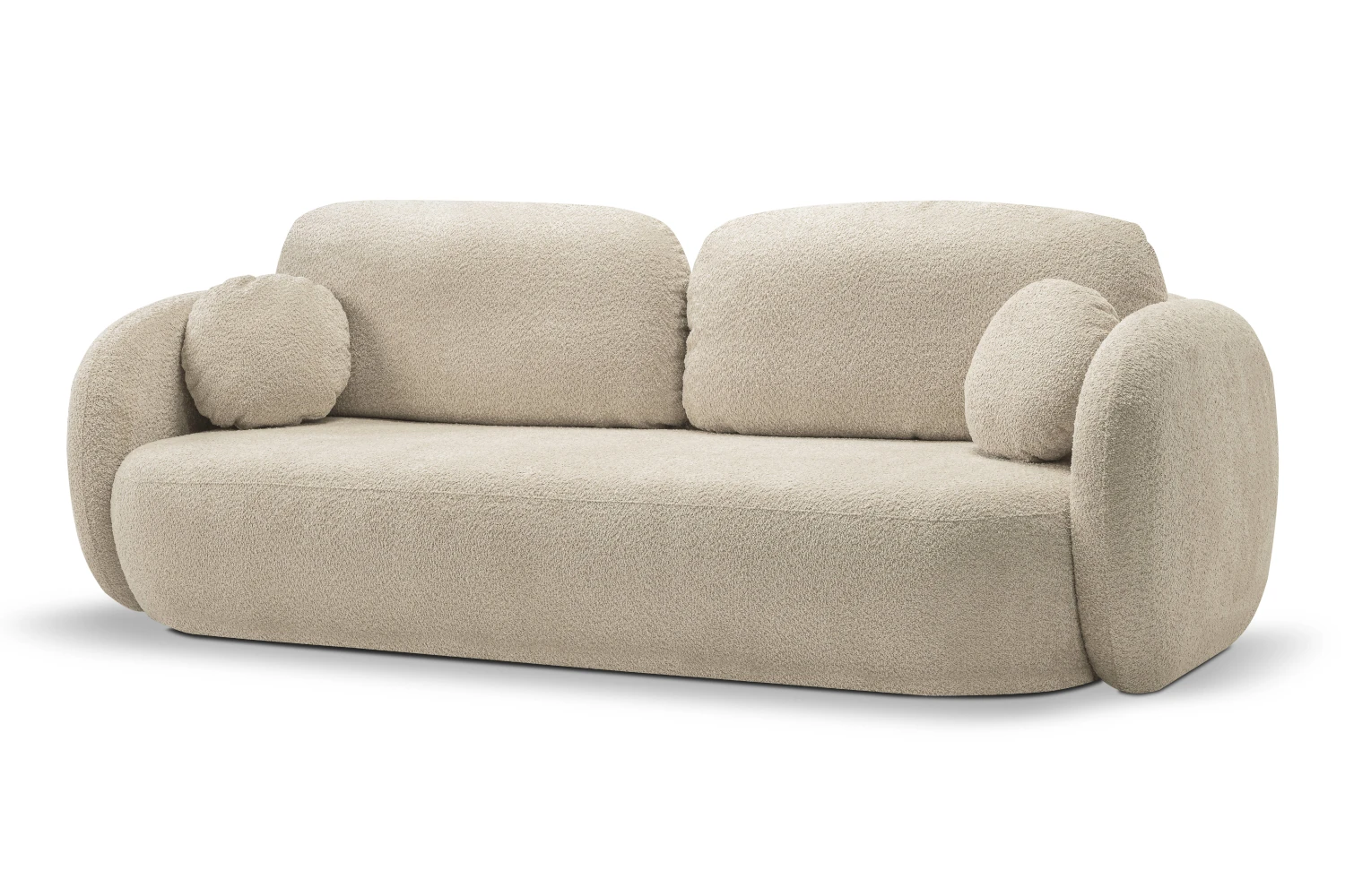 Kanapa Mochi to wygodna, zaokrąglona sofa, która wyróżnia się miękką formą i przytulnym wykończeniem. Obicie z tkaniny Abriamo 03 w kolorze beżowym pięknie rozświetla wnętrze i pasuje zarówno do nowoczesnych, jak i bardziej klasycznych aranżacji. To doskonały wybór, jeżeli szukasz kanapy z funkcją spania i pojemnikiem na pościel do salonu lub pokoju dziennego.