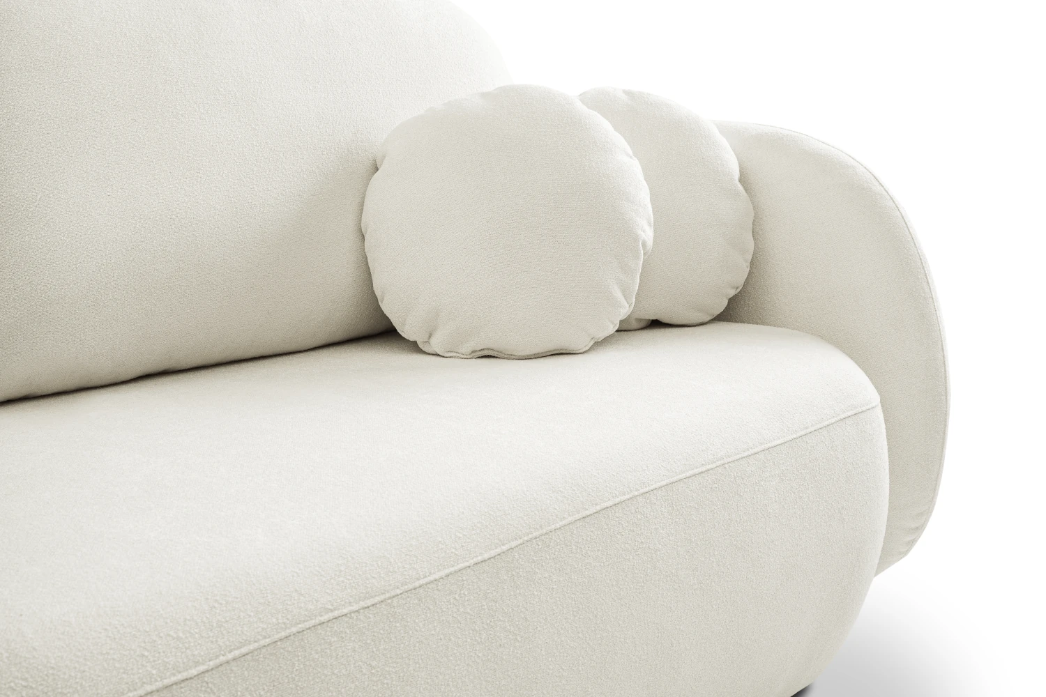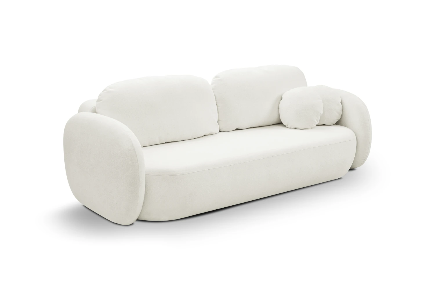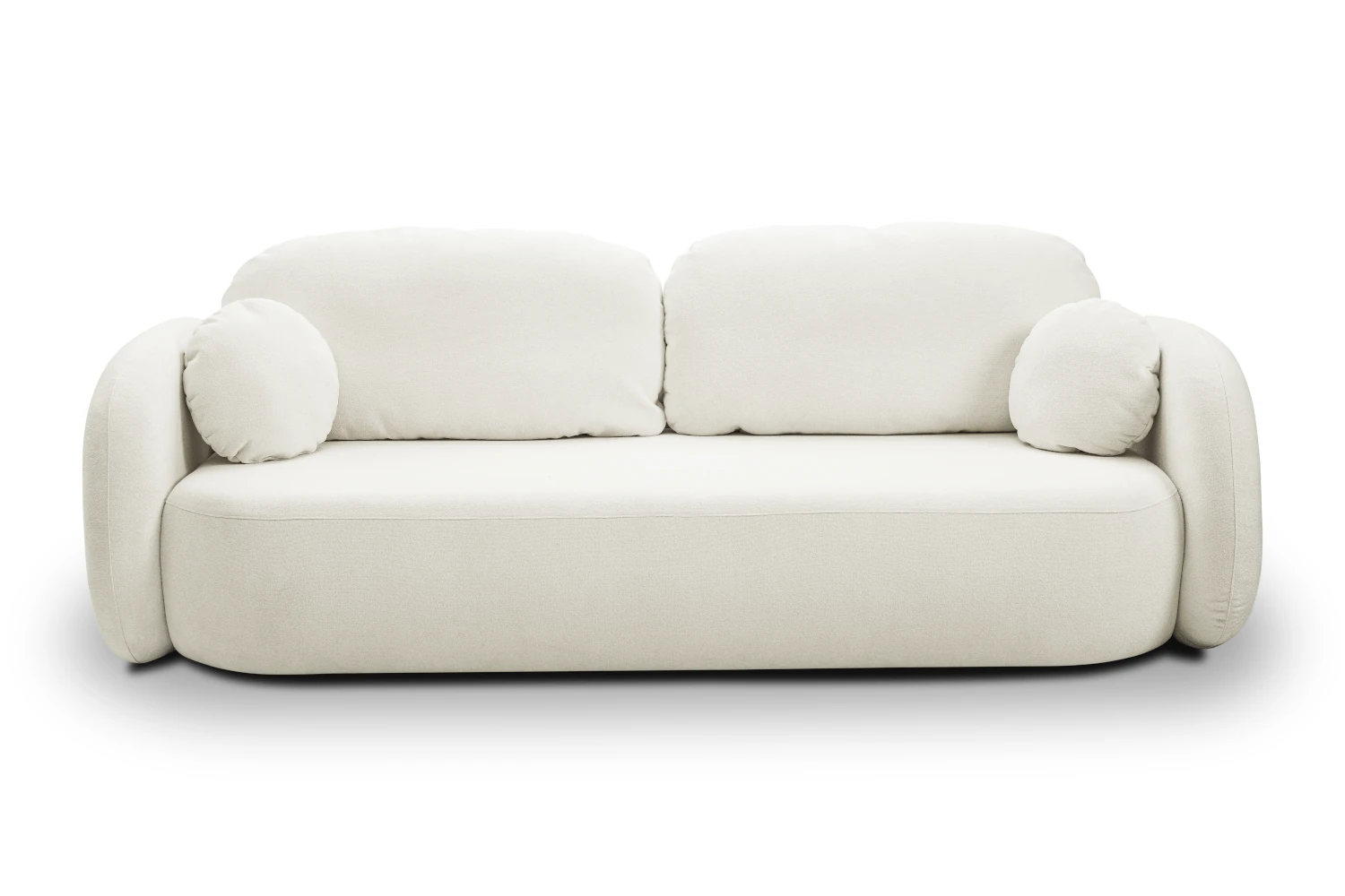 Kanapa Mochi to wygodna, zaokrąglona sofa, która wyróżnia się miękką formą i przytulnym wykończeniem. Obicie z tkaniny Sicuro 60 w kolorze kremowym pasuje zarówno do nowoczesnych, jak i bardziej klasycznych aranżacji. To doskonały wybór, jeżeli szukasz kanapy z funkcją spania i pojemnikiem na pościel do salonu lub pokoju dziennego.