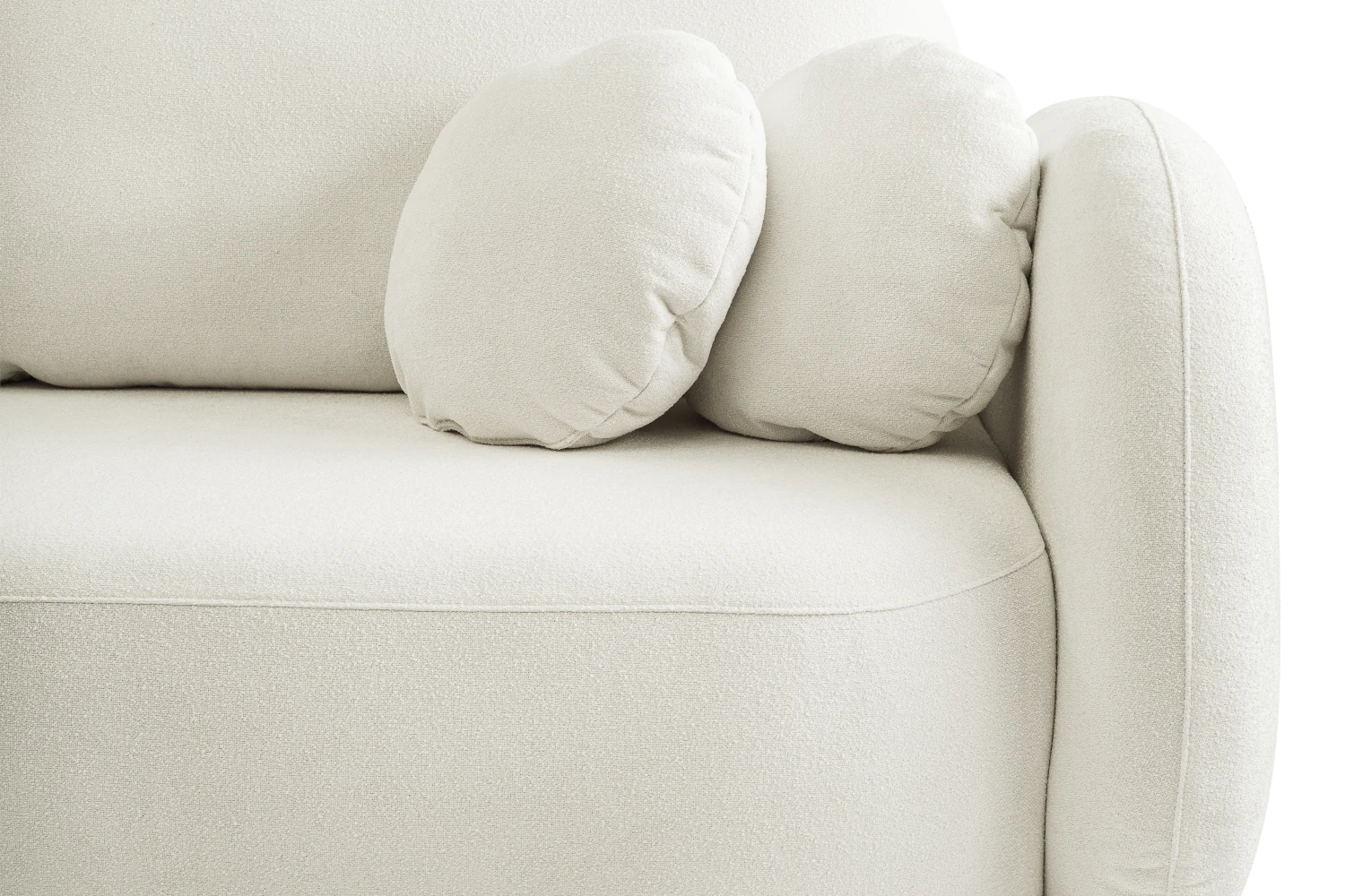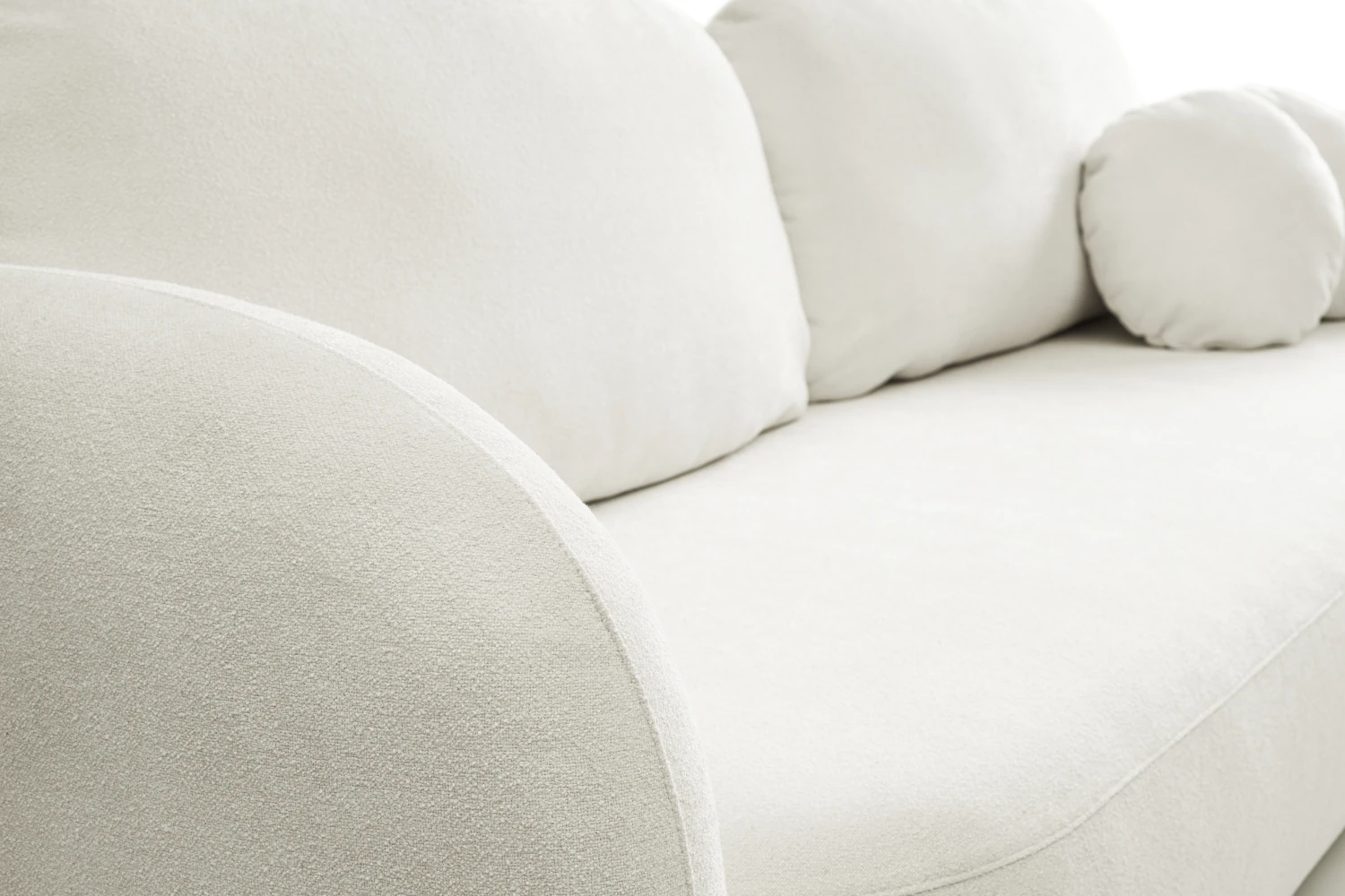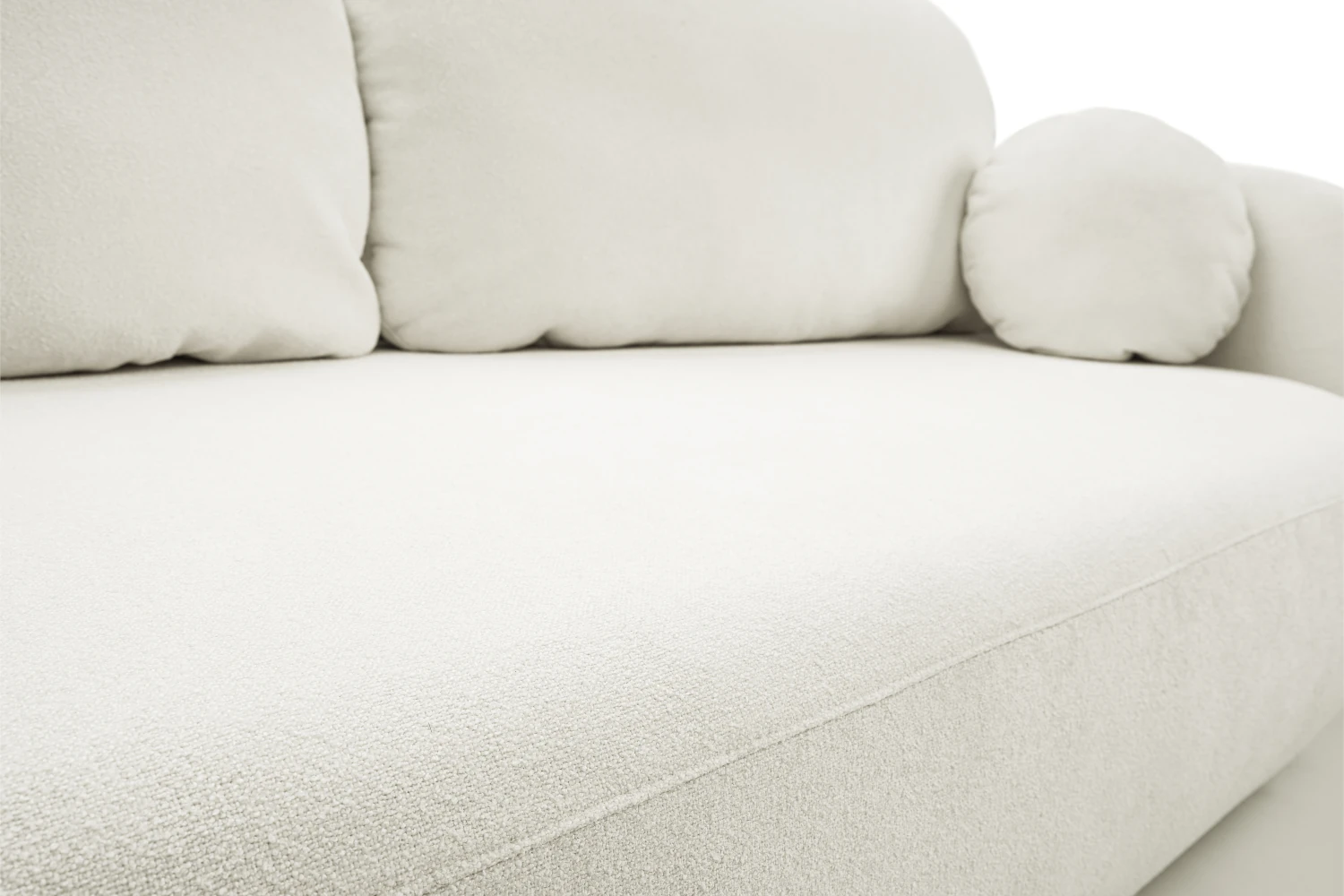 Kanapa Mochi to wygodna, zaokrąglona sofa, która wyróżnia się miękką formą i przytulnym wykończeniem. Obicie z tkaniny Sicuro 60 w kolorze kremowym pasuje zarówno do nowoczesnych, jak i bardziej klasycznych aranżacji. To doskonały wybór, jeżeli szukasz kanapy z funkcją spania i pojemnikiem na pościel do salonu lub pokoju dziennego.