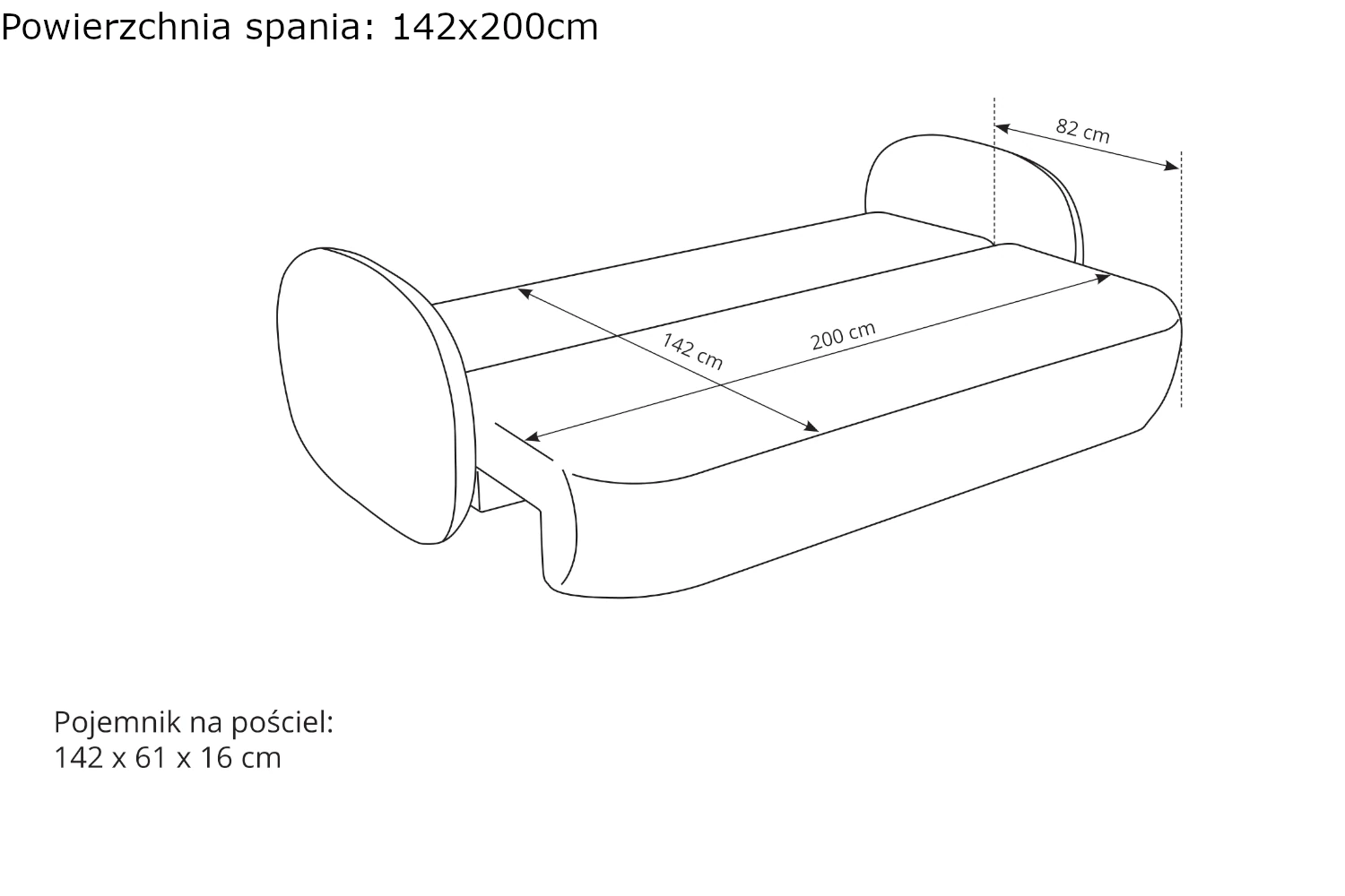 Kanapa wyposażona jest w praktyczną funkcję spania. Dzięki mechanizmowi DL jednym płynnym ruchem rozłożysz sofę, uzyskując powierzchnię spania 142x200 cm - idealną dla dwóch osób. W konstrukcji ukryto także pojemnik na pościel, w którym wygodnie przechowasz koce, kołdrę i poduszki.