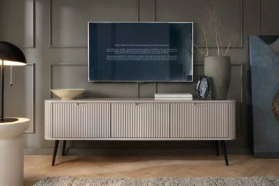 Szafka RTV Luna z drzwiczkami i ryflowanymi frontami to połączenie ponadczasowej estetyki i praktycznego zastosowania. Jej nowoczesna bryła wyróżnia się delikatną strukturą frontów, które nadają wnętrzu elegancji i wyjątkowego charakteru.