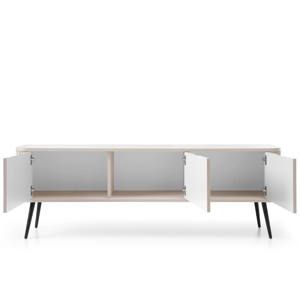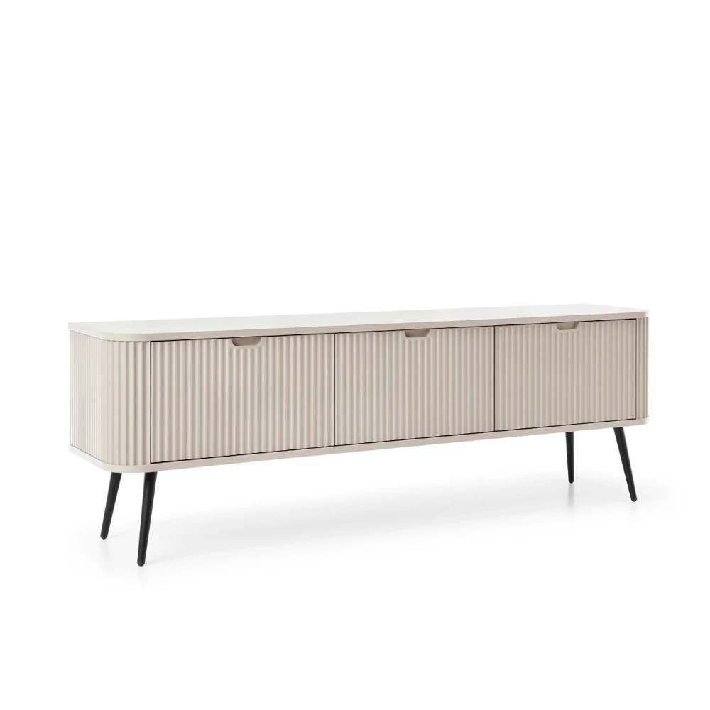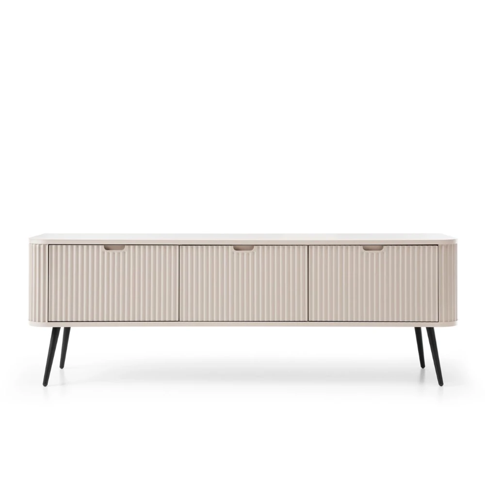 Kaszmirowa szafka RTV Luna z drzwiczkami i ryflowanymi frontami