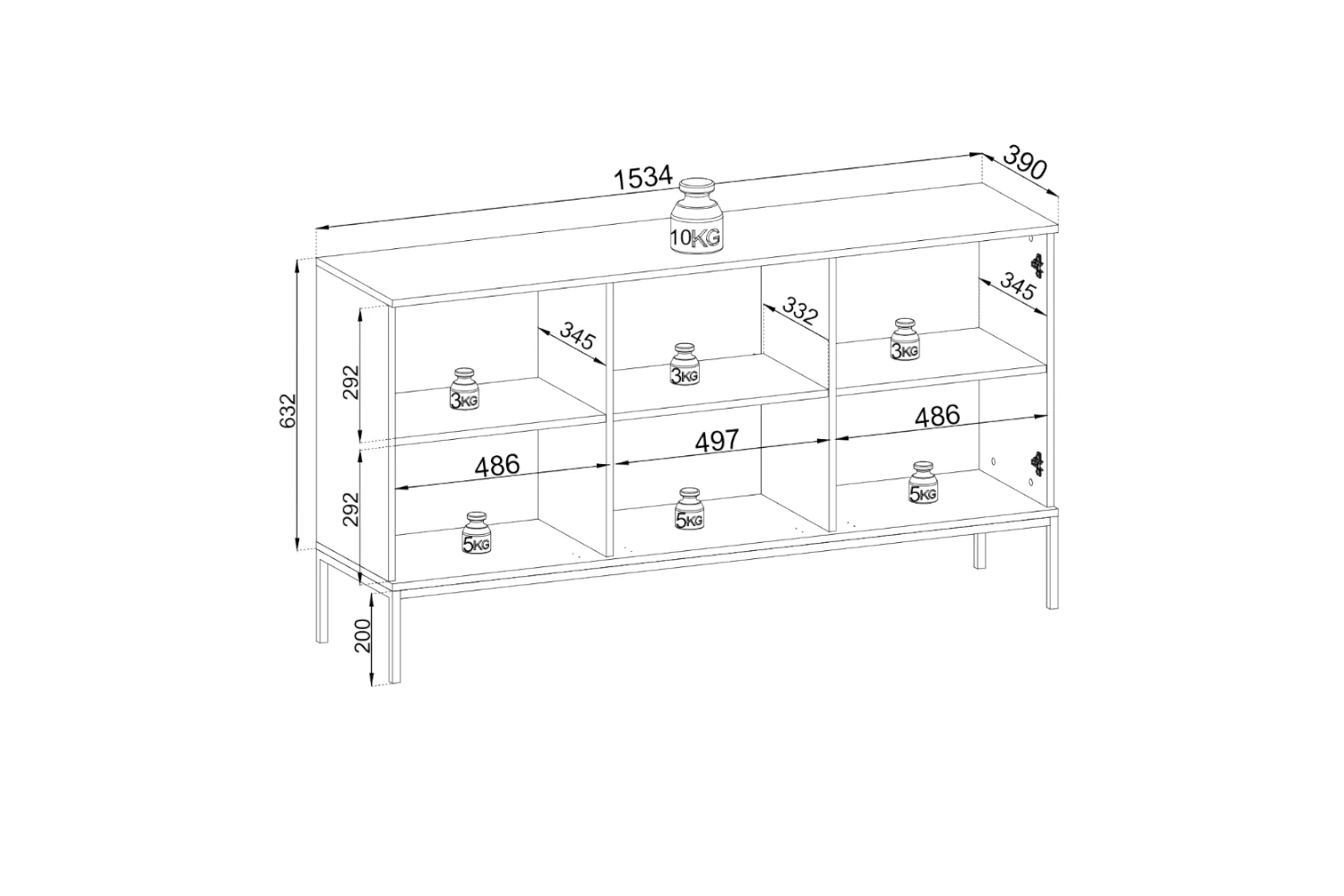 Wymiary komody nadają bryle lekkości i umożliwiają wygodne sprzątanie pod meblem. Stabilna konstrukcja z płyty laminowanej oraz płyty MDF gwarantuje trwałość na lata. Komoda Linea Dąb Wotan doskonale sprawdzi się jako komoda do salonu, jadalni lub przedpokoju, tworząc spójną aranżację z pozostałymi meblami z kolekcji.