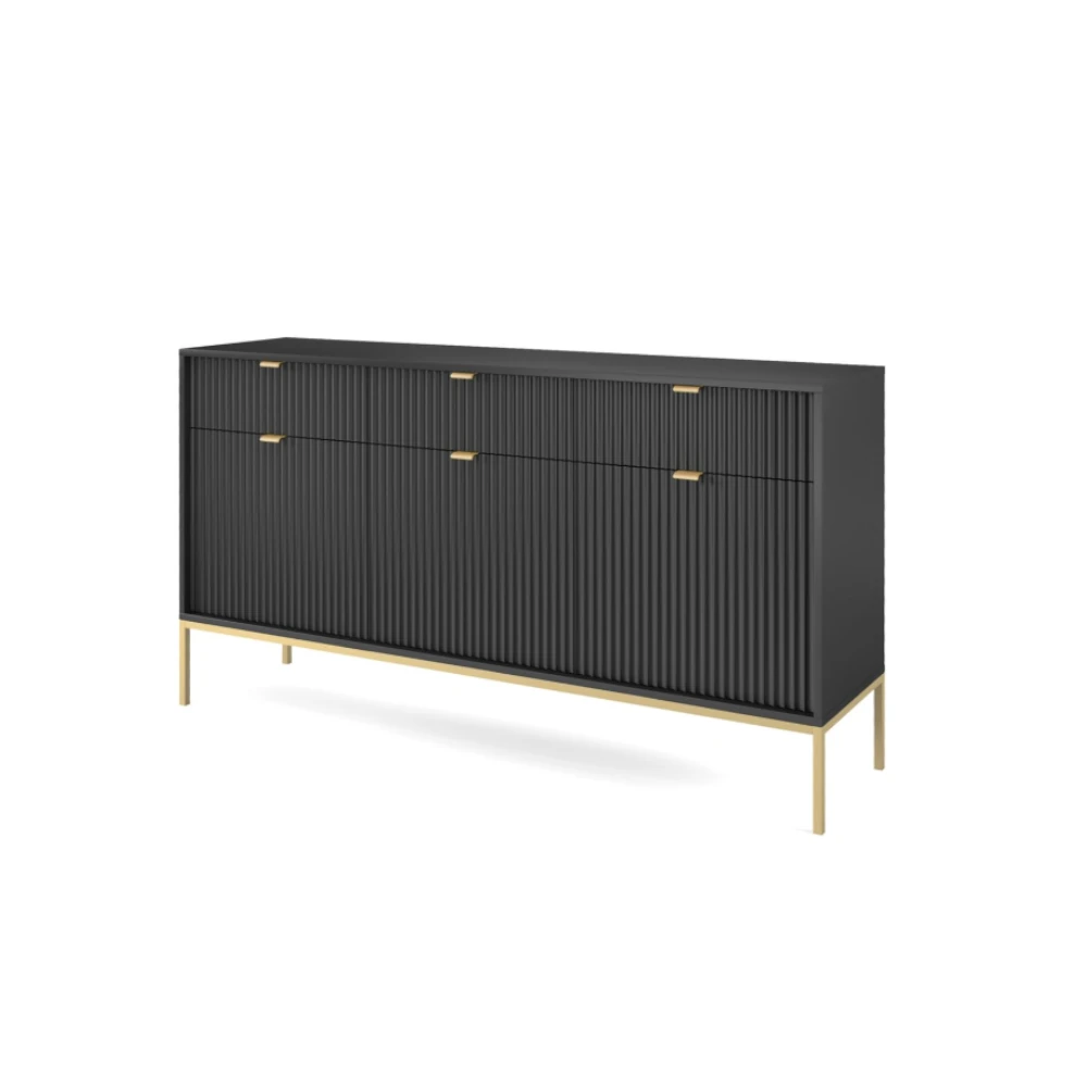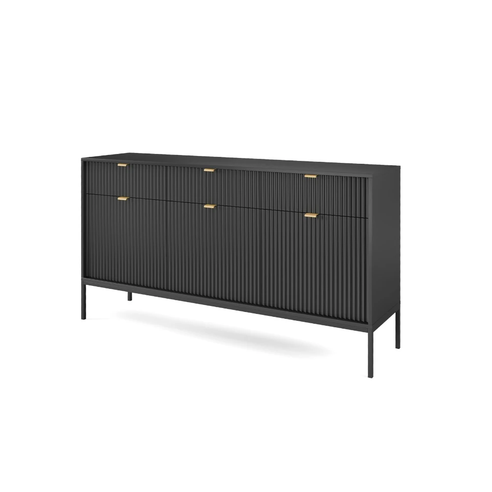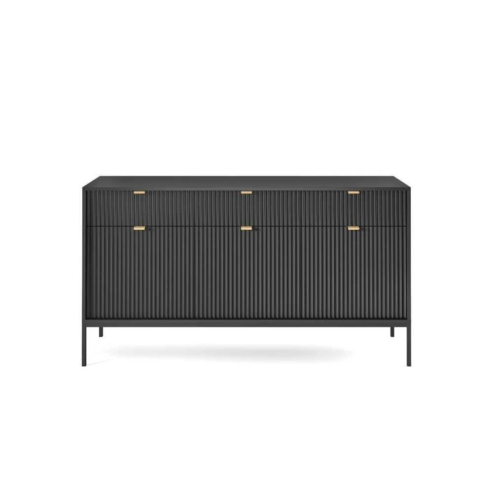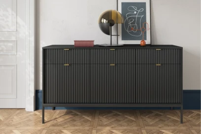 Komoda trzydrzwiowa Nuo czarna ryflowana z szufladami