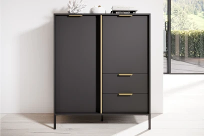 Komoda wysoka Axis dwudrzwiowa z szufladami to propozycja dla osób, które szukają funkcjonalnego i jednocześnie bardzo eleganckiego mebla do nowoczesnego wnętrza.