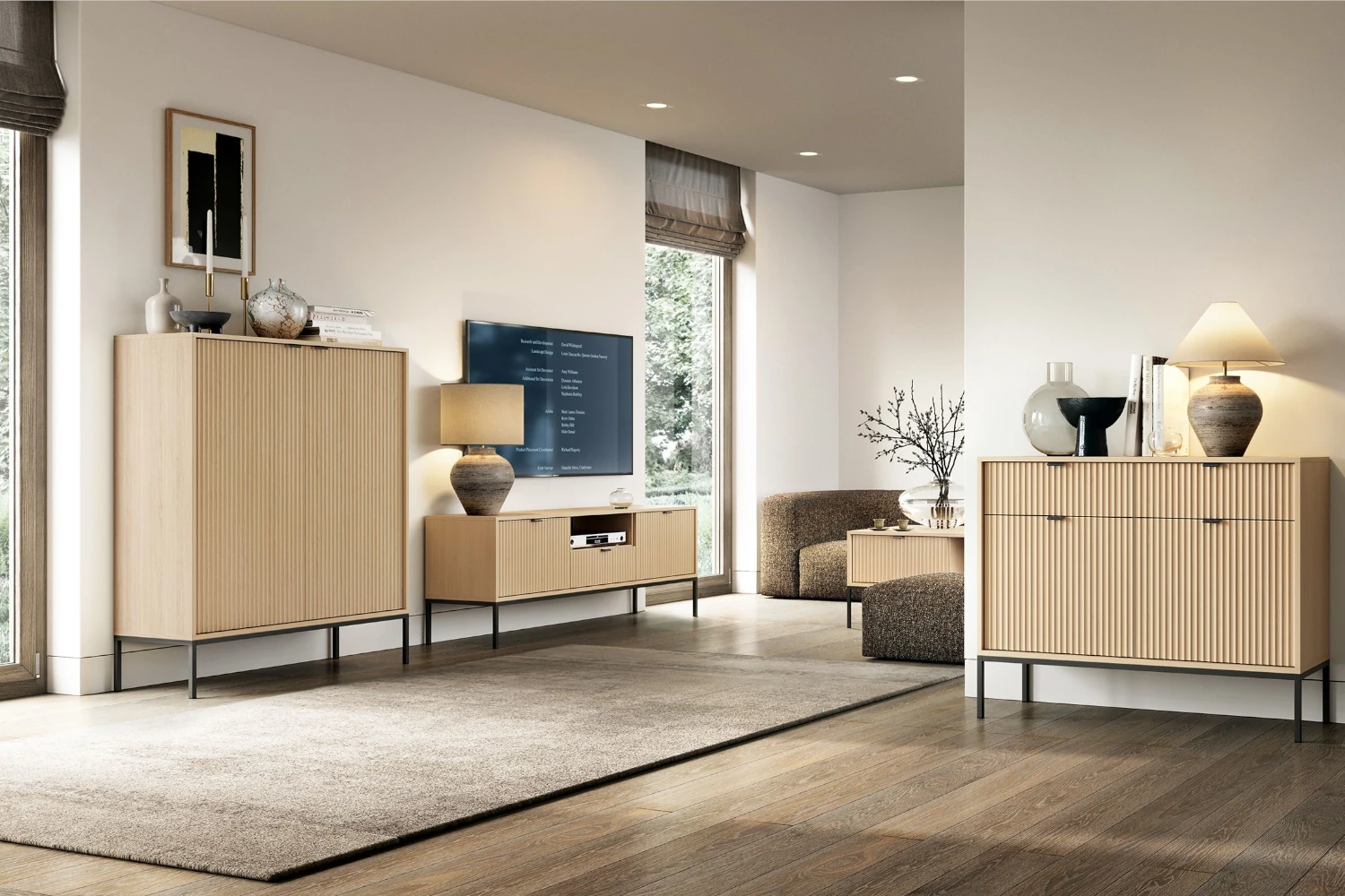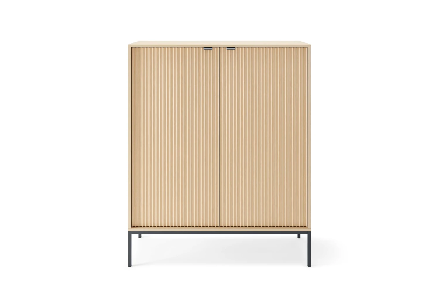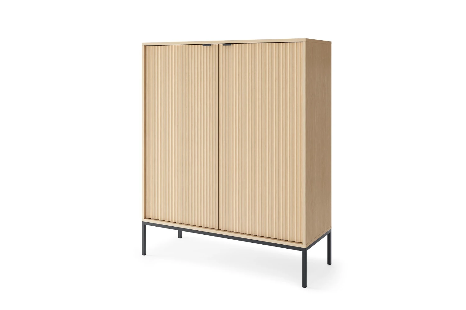 Komoda wysoka Nuo z ryflowanymi drzwiami to elegancki i funkcjonalny mebel, który idealnie wpisuje się w nowoczesne oraz klasyczne wnętrza. Wykonana w ciepłym, naturalnym odcieniu dębu, wyróżnia się dekoracyjnymi, pionowo ryflowanymi frontami, które nadają bryle unikalnego, trójwymiarowego charakteru. Mebel oferuje dużą przestrzeń do przechowywania za czterema drzwiczkami, a wysokie nóżki dodają konstrukcji lekkości i ułatwiają utrzymanie porządku w pomieszczeniu.