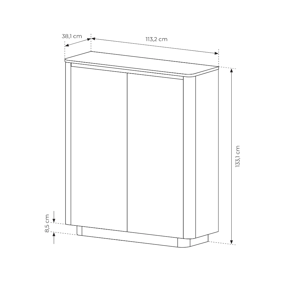 Za dwiema pełnymi frontami ukryto praktyczny układ półek, który ułatwia segregowanie i przechowywanie różnych przedmiotów. Wysoka konstrukcja komody pozwala maksymalnie wykorzystać przestrzeń w pionie, więc mebel sprawdzi się także w mniejszych pomieszczeniach, gdzie liczy się każdy centymetr. Gładkie fronty bez widocznych uchwytów podkreślają nowoczesny charakter kolekcji Cala i sprawiają, że mebel wpisuje się w aktualne trendy wnętrzarskie.