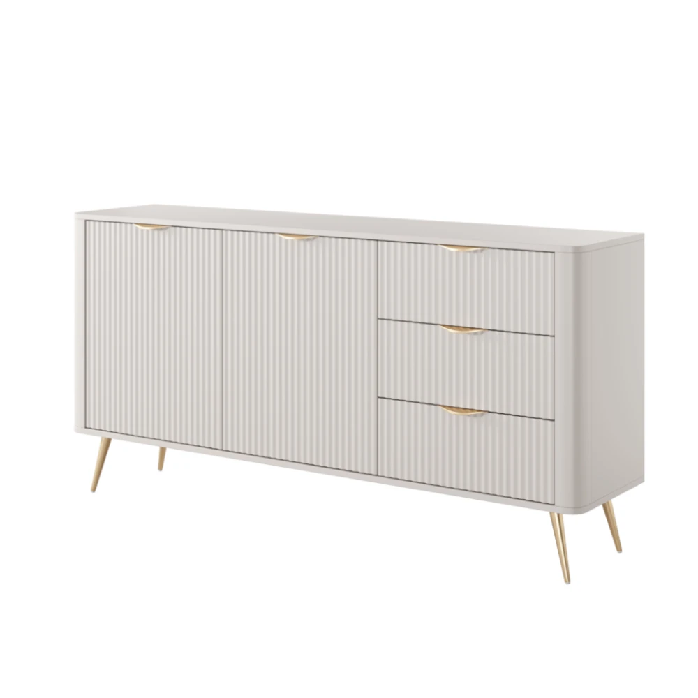 Komoda z drzwiczkami i szufladami ryflowana Amelia beżowa