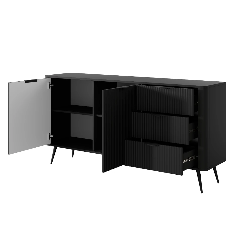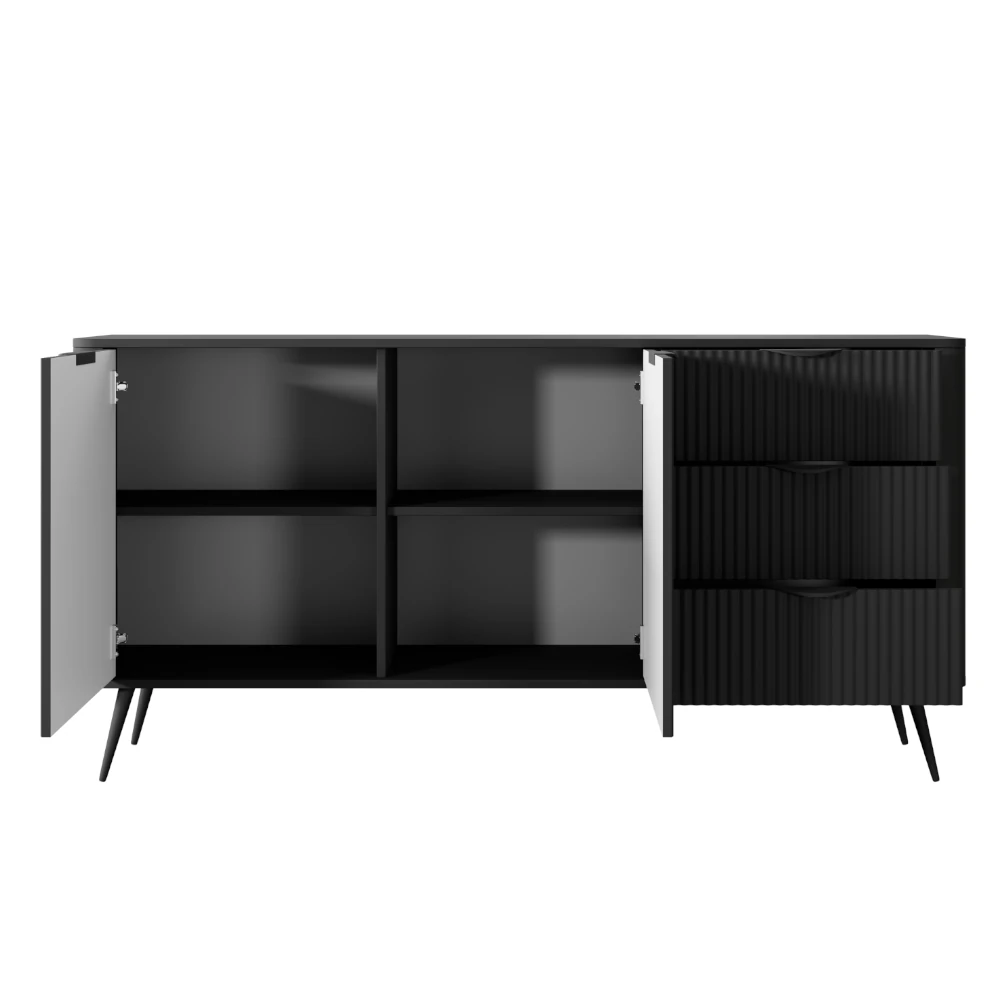 Komoda z drzwiczkami i szufladami ryflowana Amelia czarna