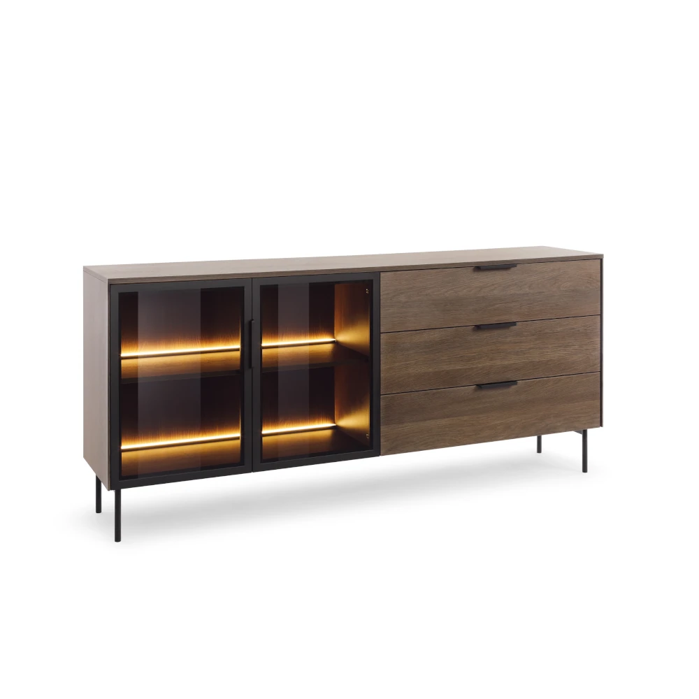 Komoda z witryną i szufladami z oświetleniem LED Nokta Dąb Dunin