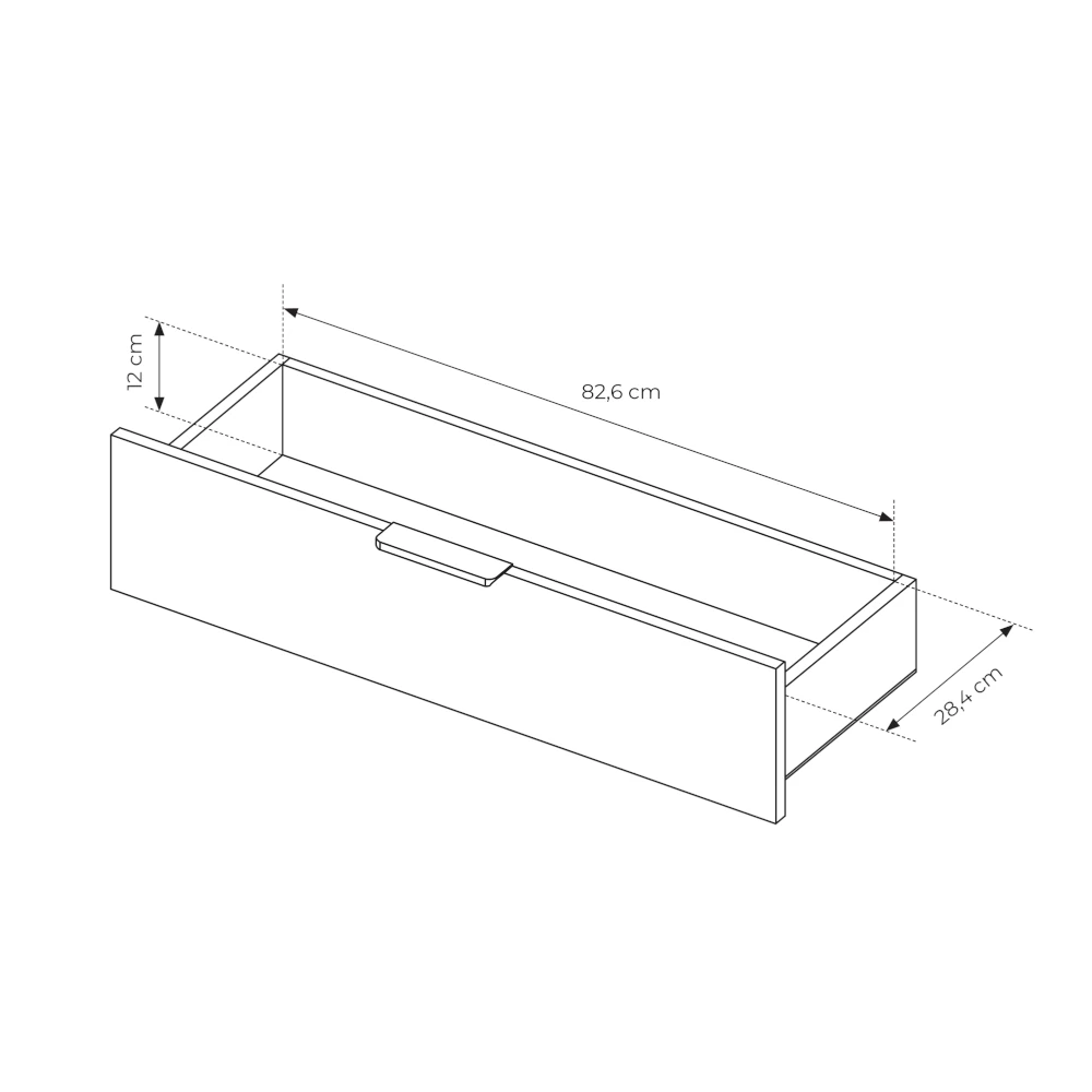 Wbudowane profile LED o barwie ciepłej bieli sprawiają, że komoda Nokta sprawdzi się nie tylko jako mebel do przechowywania, ale również jako nastrojowe oświetlenie strefy wypoczynkowej. Trzy szerokie szuflady na kulkowych prowadnicach z pełnym wysuwem pozwalają w wygodny sposób uporządkować dokumenty, tekstylia lub drobiazgi codziennego użytku.
