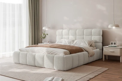 Jeśli szukasz mebla, który łączy wygląd „premium” z codzienną wygodą, łóżko tapicerowane Bubble będzie strzałem w dziesiątkę. To model zaprojektowany z myślą o maksymalnym komforcie snu i estetyce sypialni - miękka bryła, eleganckie przeszycia i przyjemna w dotyku tkanina bouclé sprawiają, że łóżko prezentuje się lekko i bardzo nowocześnie.