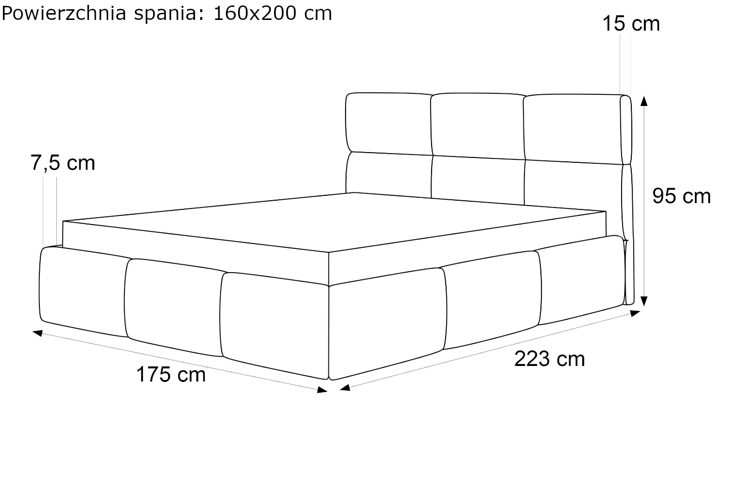 Ogromną zaletą tego modelu jest duży pojemnik na pościel umieszczony pod całą powierzchnią spania. To idealny sposób na zyskanie dodatkowego miejsca do przechowywania kołder, poduszek oraz innych tekstyliów domowych bez zagracania pokoju. Wewnętrzna część łóżka została starannie wykończona materiałem typu wigofil, a listwa wewnętrzna oraz spód pojemnika powstały z białej płyty laminowanej, co gwarantuje trwałość i ułatwia utrzymanie nienagannej czystości. O Twój komfort dba niski, elegancki zagłówek o wysokości 96 cm, który został wykonany z warstwy pianki (3 cm) oraz owaty (3 cm). Zapewnia on doskonałe oparcie dla pleców podczas wieczornego relaksu. W zestawie z łóżkiem otrzymujesz również solidny stelaż drewniany składający się z 32 elastycznych listew, który bardzo dobrze współpracuje z materacem, zapewniając mu odpowiednią wentylację. Wysokość przodu i boków wynosi 35 cm, co tworzy harmonijną i zwartą bryłę.