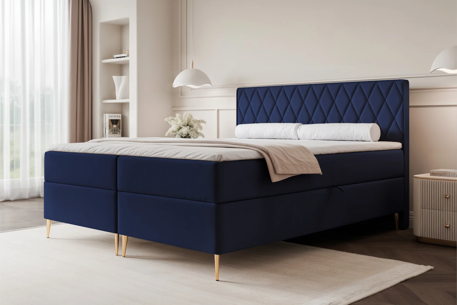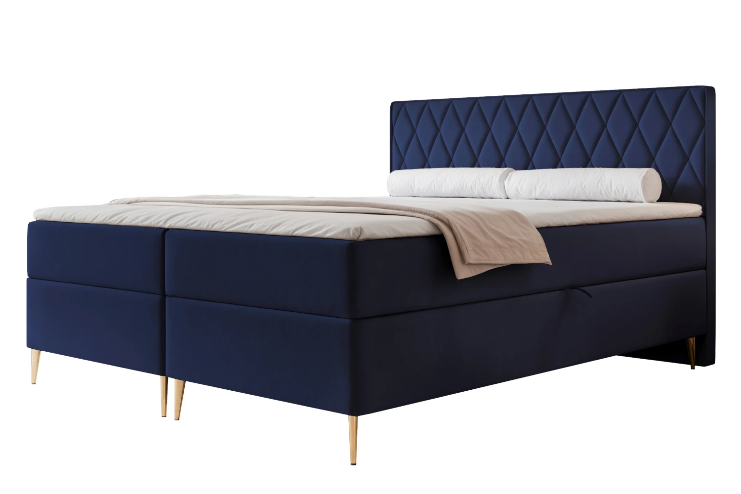 Łóżko kontynentalne z nóżkami i pojemnikiem na pościel Royal Granatowy