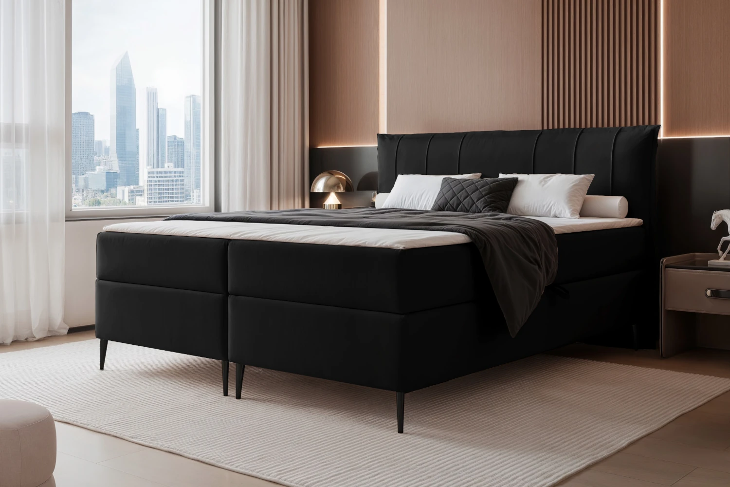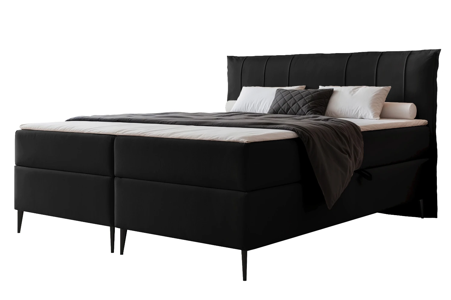 Łóżko kontynentalne z nóżkami i pojemnikiem na pościel Vertico Czarny