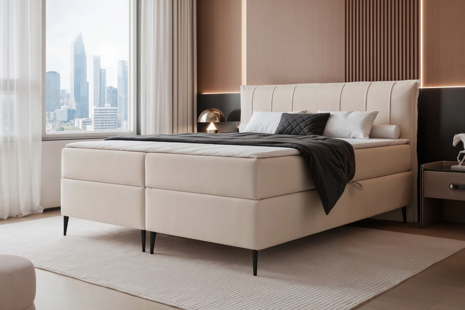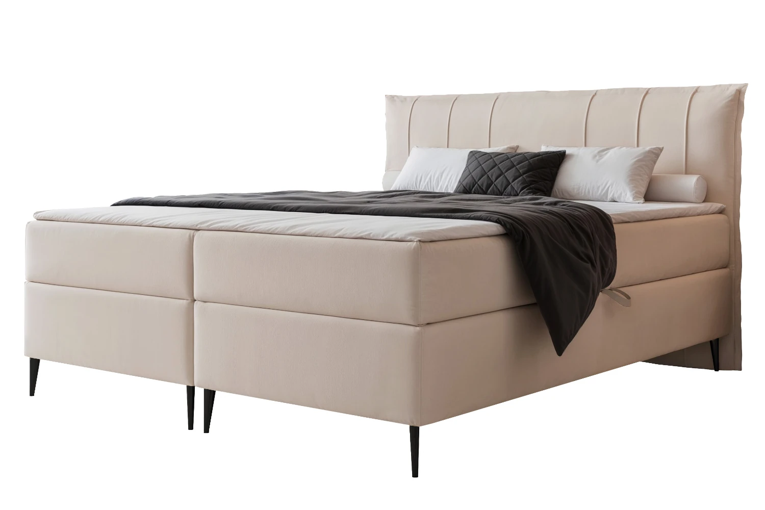 Łóżko kontynentalne z nóżkami i pojemnikiem na pościel Vertico Ecru