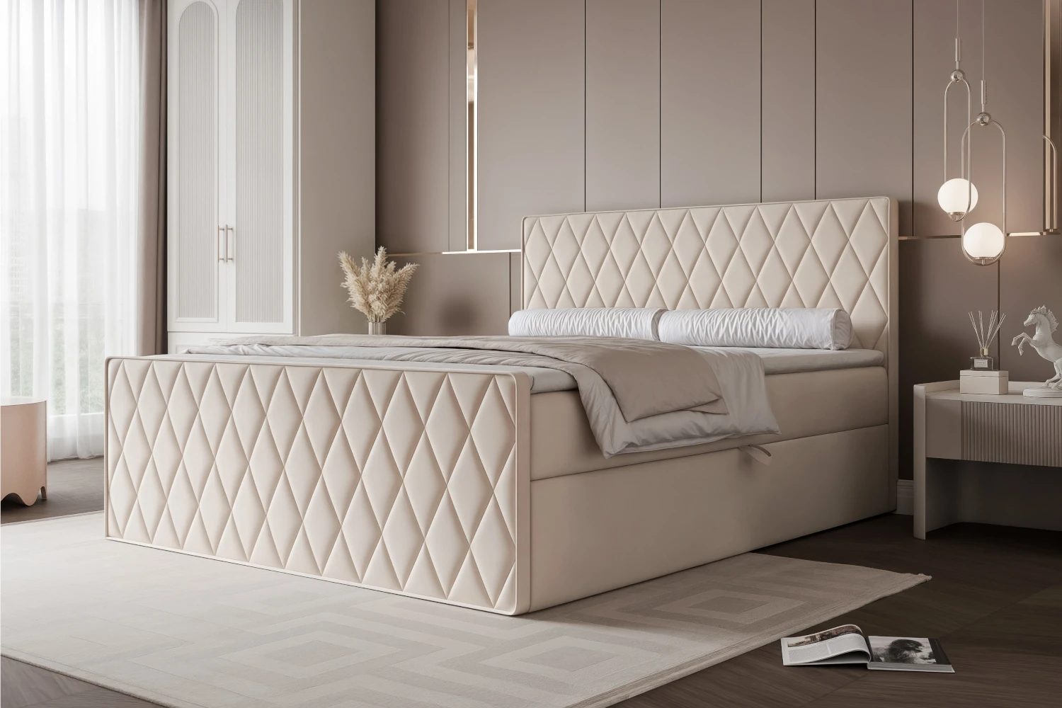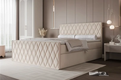 Łóżko kontynentalne z pojemnikiem na pościel Diamond Ecru