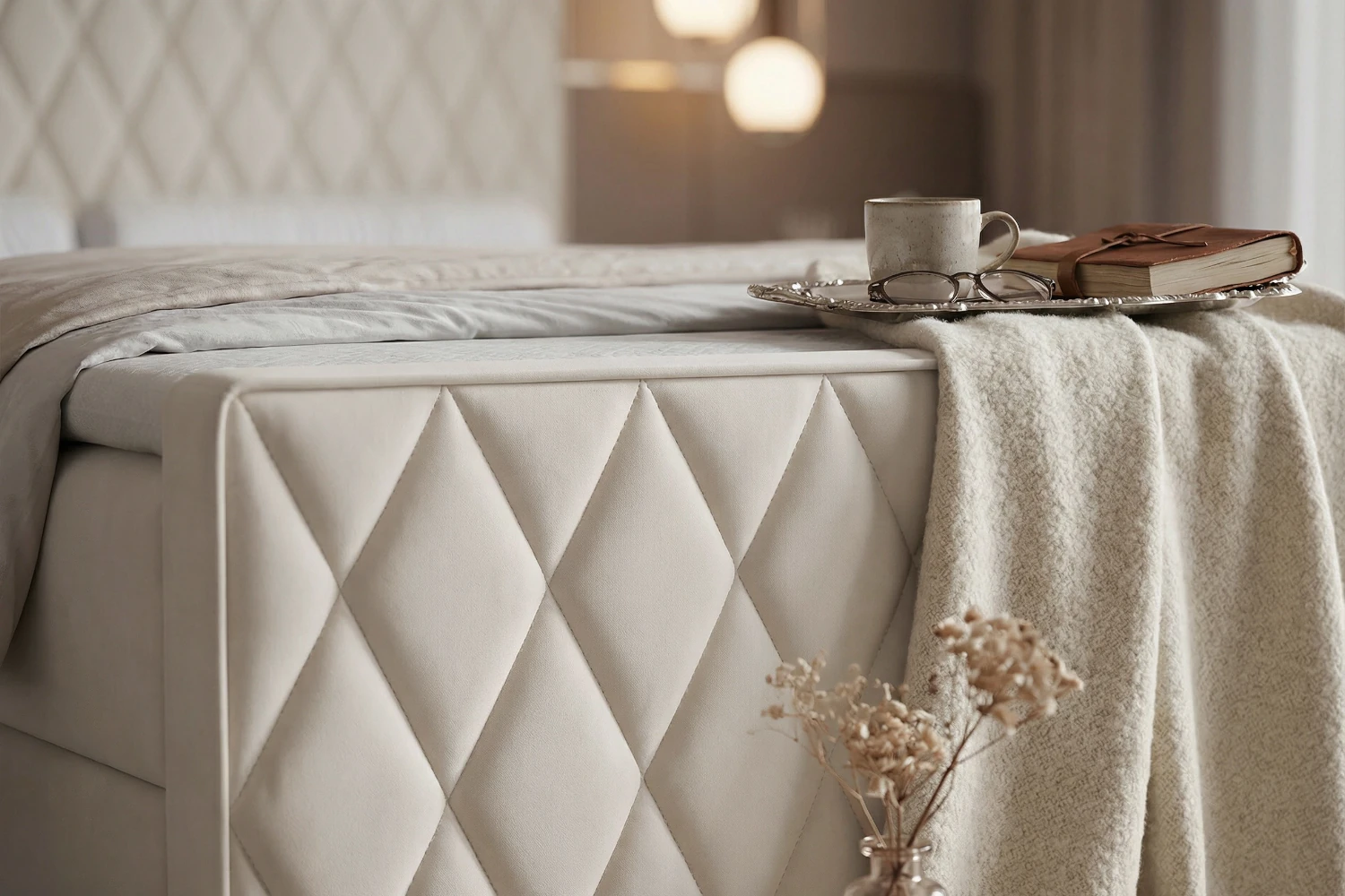 Jeżeli szukasz mebla, który łączy efektowny wygląd, wygodę oraz praktyczne rozwiązania, łóżko kontynentalne z topperem i pojemnikiem Diamond będzie świetnym wyborem. To model stworzony z myślą o komfortowym śnie, eleganckiej aranżacji wnętrza i funkcjonalnym wykorzystaniu przestrzeni.
