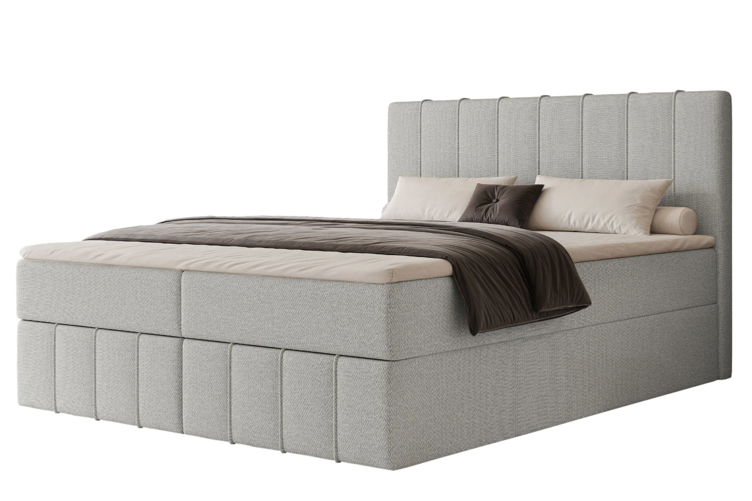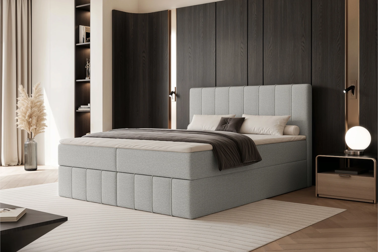 Łóżko kontynentalne Elite zostało zaprojektowane z myślą o wygodzie, estetyce i funkcjonalności, dzięki czemu doskonale sprawdza się jako centralny element nowoczesnej sypialni. Tapicerka w odcieniu jasnej stali nadaje bryle lekkości i elegancji, a wysokie wezgłowie podkreśla reprezentacyjny charakter mebla. To model, który świetnie wpisuje się zarówno w jasne, minimalistyczne wnętrza, jak i bardziej klasyczne aranżacje.