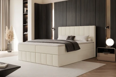 Łóżko kontynentalne Elite zostało zaprojektowane z myślą o wygodzie, estetyce i funkcjonalności, dzięki czemu doskonale sprawdza się jako centralny element nowoczesnej sypialni. Tapicerka w śmietankowym odcieniu nadaje bryle lekkości i elegancji, a wysokie wezgłowie podkreśla reprezentacyjny charakter mebla. To model, który świetnie wpisuje się zarówno w jasne, minimalistyczne wnętrza, jak i bardziej klasyczne aranżacje.