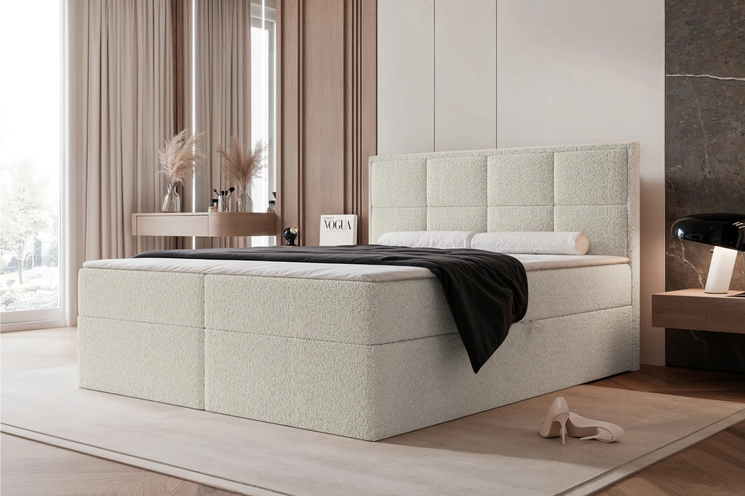 Łóżko kontynentalne Imperial to połączenie wyrazistego designu, komfortu snu i praktycznych rozwiązań, które doskonale sprawdzają się w nowoczesnej sypialni. Odcień jasnej szarości w połączeniu z eleganckim, tapicerowanym zagłówkiem z panelami tworzy efektowną bryłę, która przyciąga wzrok i nadaje wnętrzu bardziej stylowy, dopracowany charakter. To model stworzony z myślą o osobach, które szukają mebla wygodnego, funkcjonalnego i estetycznie wykończonego.