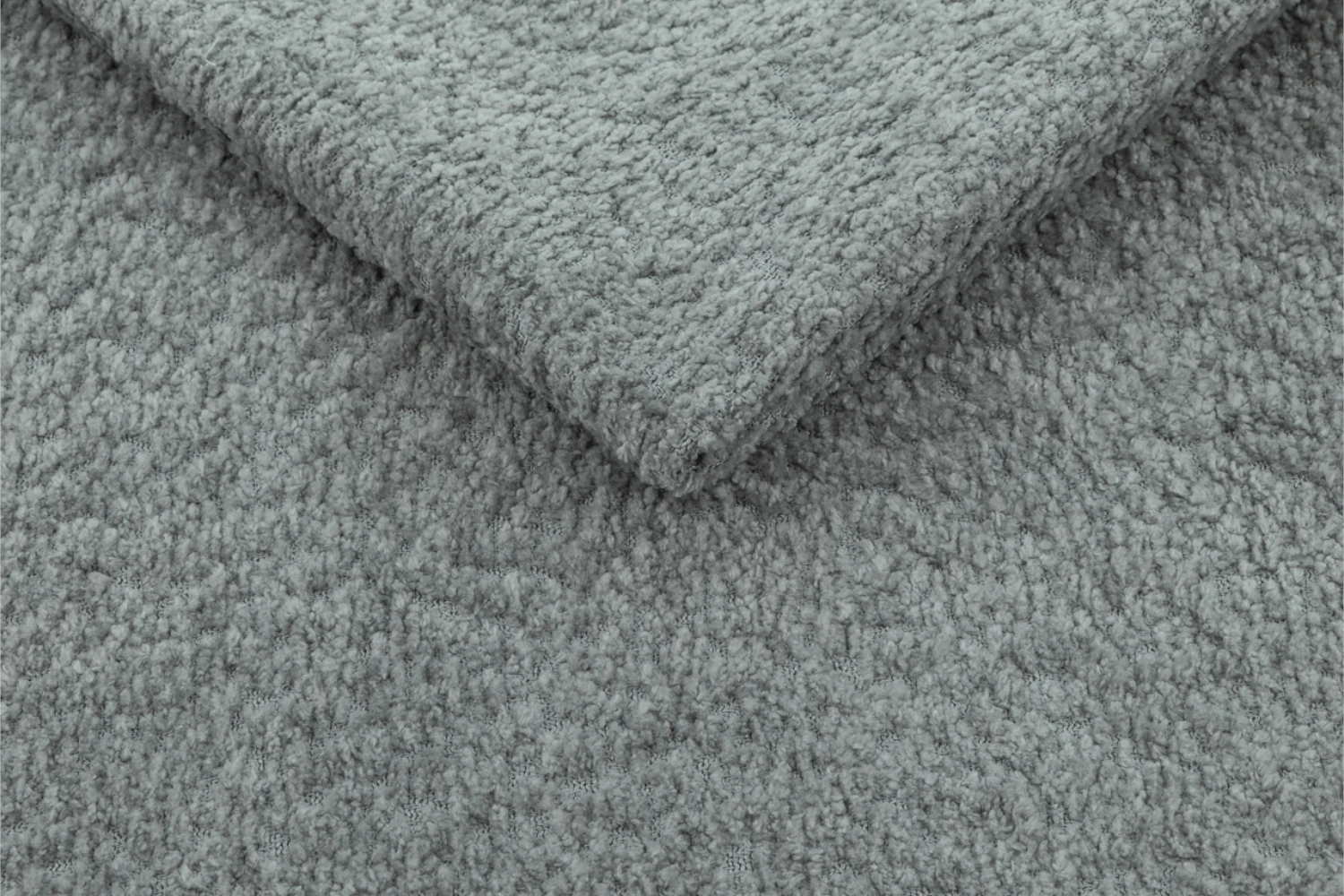 Model został obity przyjemną w dotyku tkaniną bouclé, która wyróżnia się ciekawą strukturą i nowoczesnym wyglądem. Jasno szara tapicerka nadaje wnętrzu charakteru, a jednocześnie dobrze komponuje się zarówno z jasnymi, jak i ciemniejszymi dodatkami. Dzięki temu łóżko tapicerowane do sypialni Marino pasuje do aranżacji nowoczesnych, soft loft, japandi.