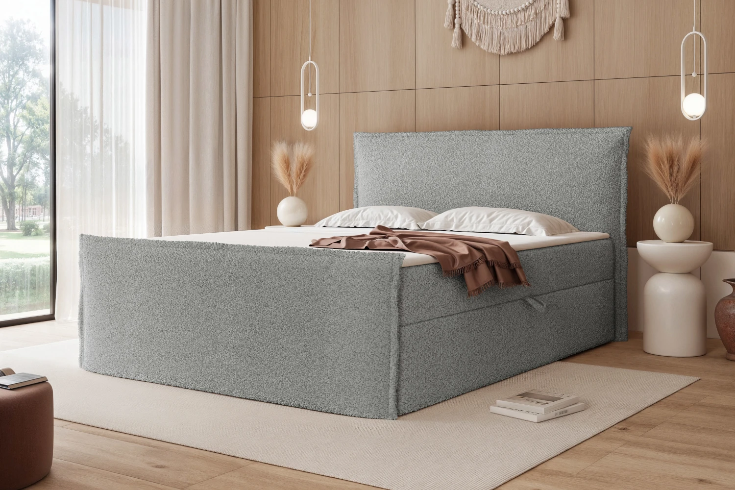 Łóżko kontynentalne z pojemnikiem na pościel Marino Jasny szary