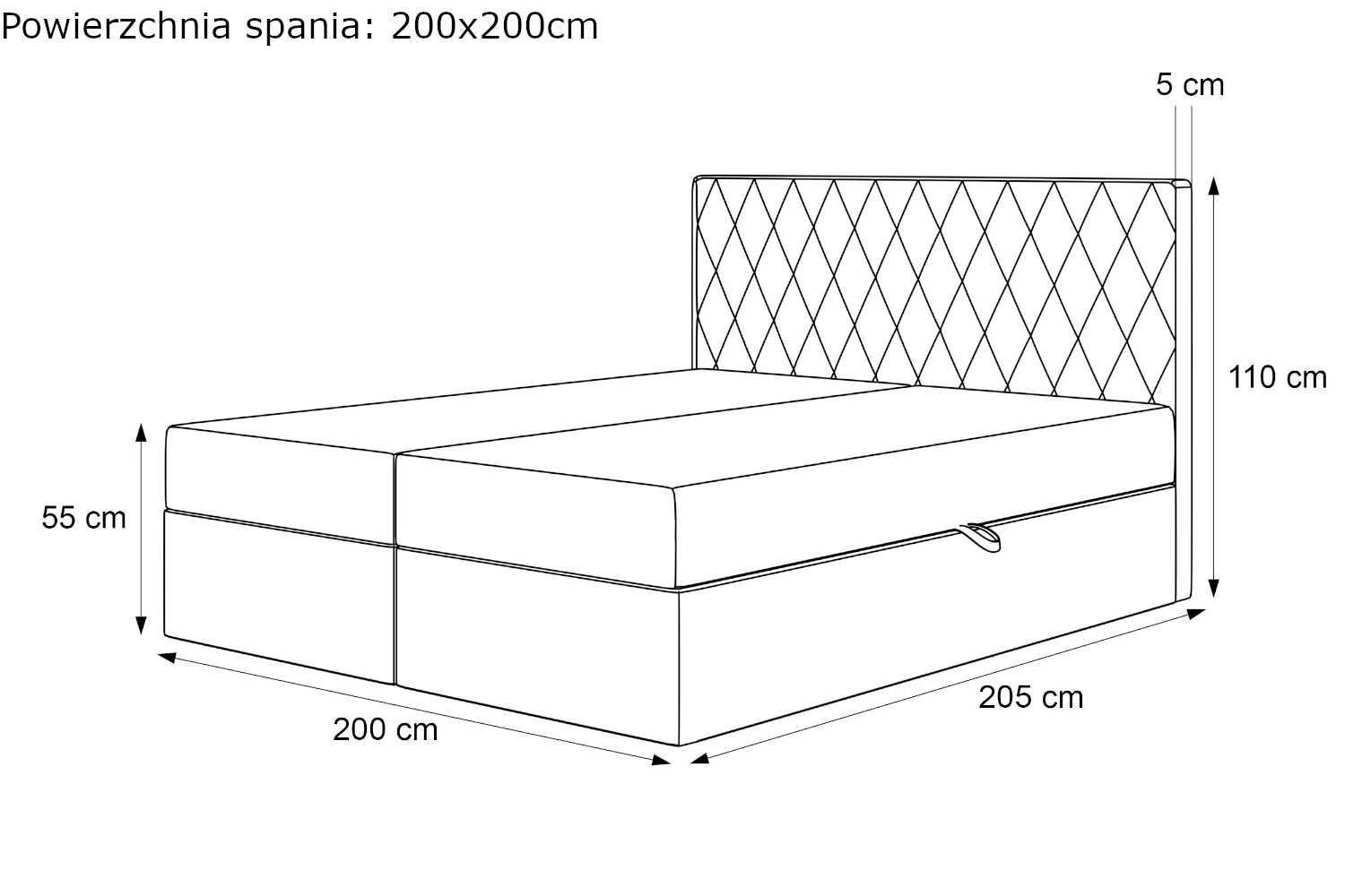 Na komfort użytkowania wpływa również wyposażenie w topper o grubości 5 cm, który poprawia wygodę wypoczynku i zwiększa miękkość powierzchni snu. W konstrukcji zastosowano także wkład bonellowy 14 cm, dzięki czemu łóżko oferuje stabilne podparcie i odpowiedni komfort podczas snu. Zagłowie wykonane z pianki 3 cm i owaty 3 cm pozwala wygodnie oprzeć plecy podczas czytania, oglądania telewizji lub wieczornego relaksu. Charakterystyczne przeszycia dodatkowo podkreślają elegancki, dekoracyjny wygląd mebla.