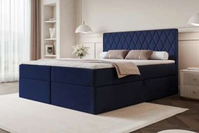 Łóżko kontynentalne z pojemnikiem na pościel Royal Granatowy