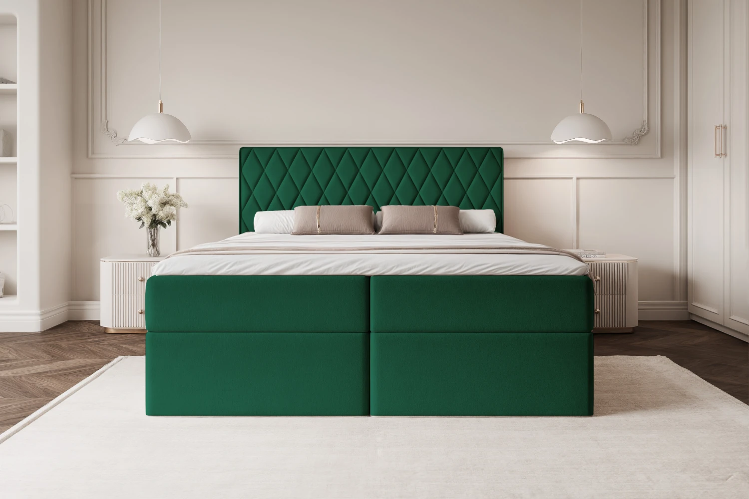 Łóżko kontynentalne z pojemnikiem na pościel Royal Zielony