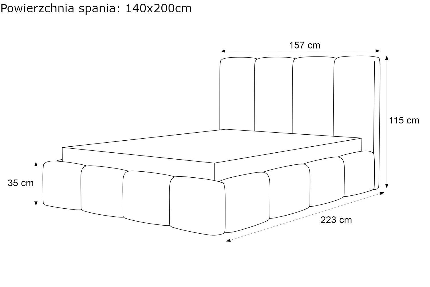 - Szerokość dla materaca 140 cm: 157 cm