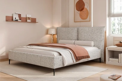 Komfort snu wspiera stelaż drewniany składający się z 32 listew - stabilny, sprężysty i odpowiedni do większości materacy. Konstrukcja została zaprojektowana z myślą o trwałości, a łóżko tapicerowane z pojemnikiem świetnie sprawdzi się zarówno w sypialni pary, jak i w pokoju gościnnym. Wysokość nóżek ok. 15 cm nadaje lekkości bryle i ułatwia sprzątanie pod łóżkiem.