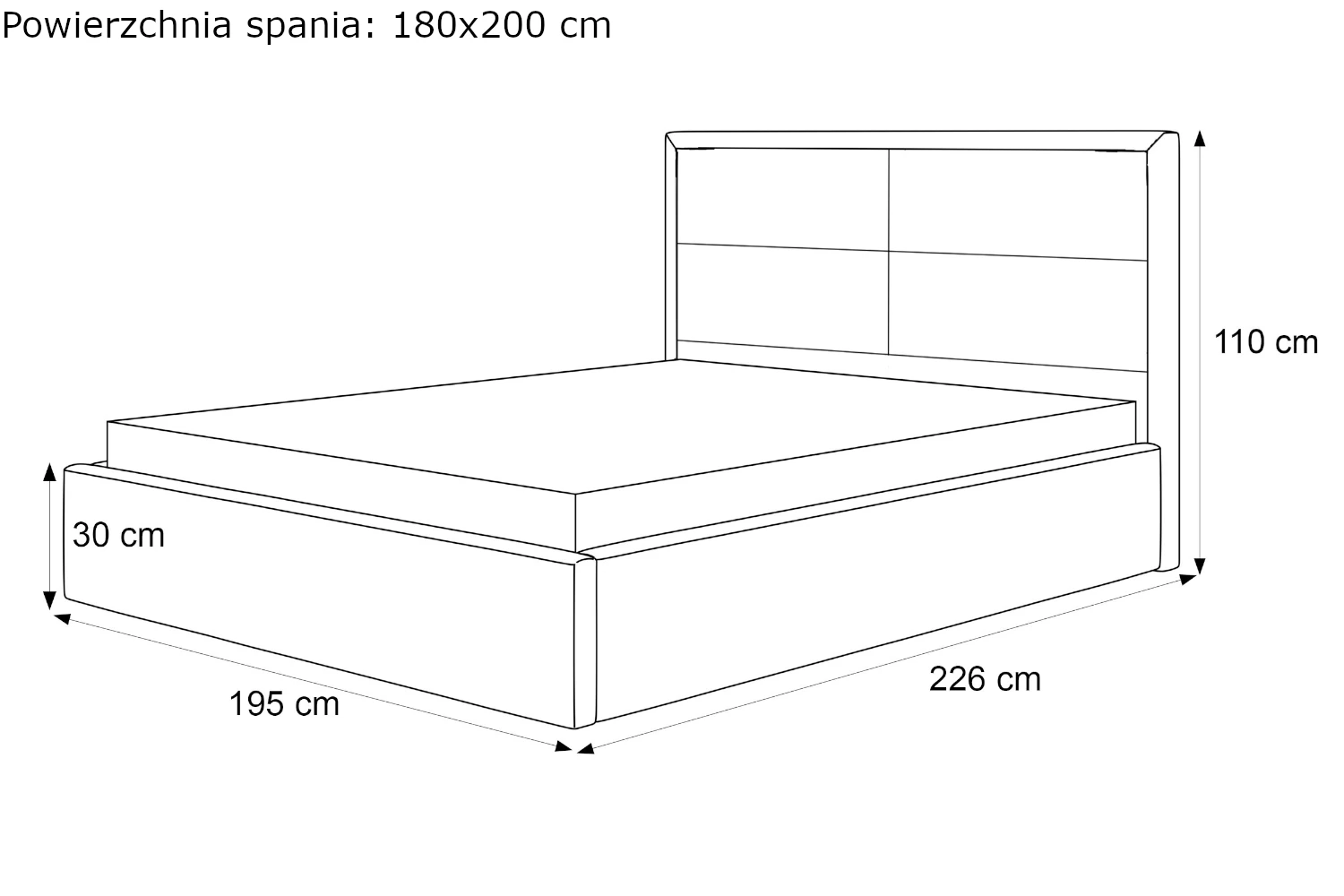- Wysokość wezgłowia: 110 cm
