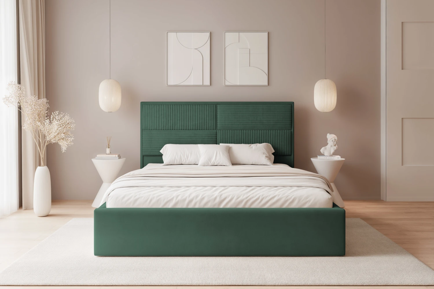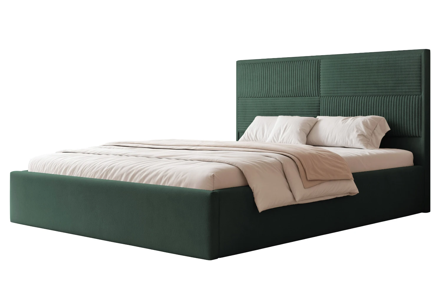 Łóżko tapicerowane do sypialni z pojemnikiem na pościel Sofia Zielony