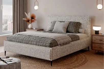Model dostępny jest w szerokiej gamie rozmiarów. Wersja prezentowana wykonana jest w tkaninie Puente 16 w kolorze popielaty melanż, która pasuje zarówno do jasnych, jak i ciemnych aranżacji. Dodatkowo możesz dopasować wykończenie do wnętrza, wybierając kolor nóżek: czarny lub złoty - to praktyczne rozwiązanie, które dodaje lekkości i ułatwia sprzątanie pod łóżkiem.