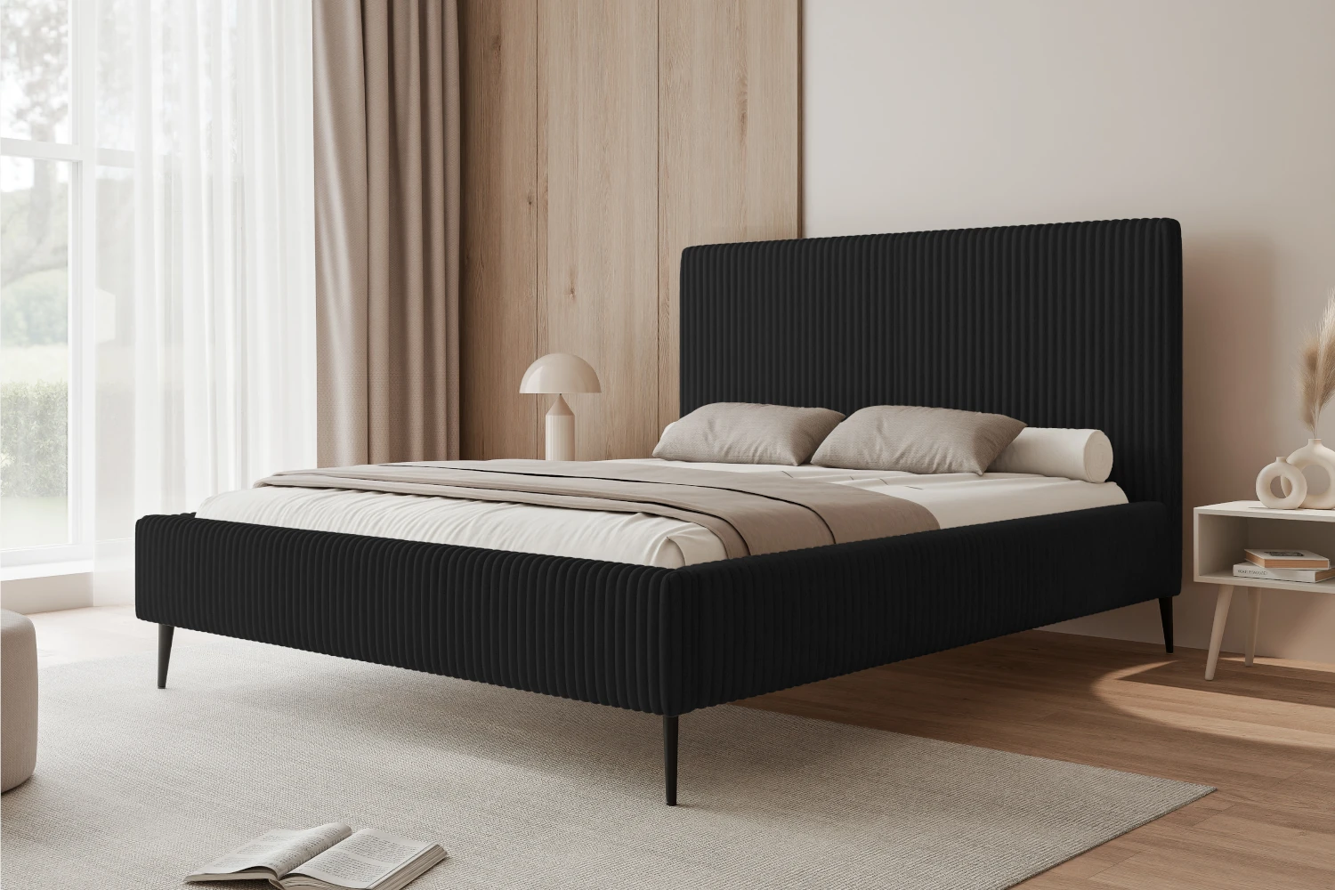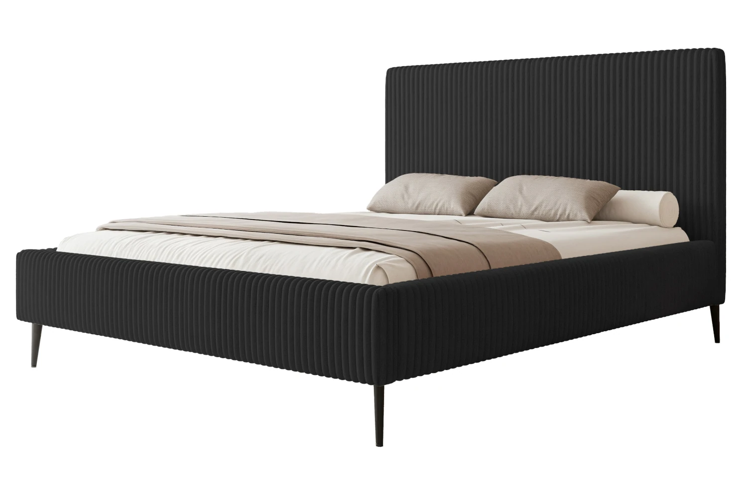 Łóżko tapicerowane na nóżkach z pojemnikiem na pościel i stelażem Luxo Czarny