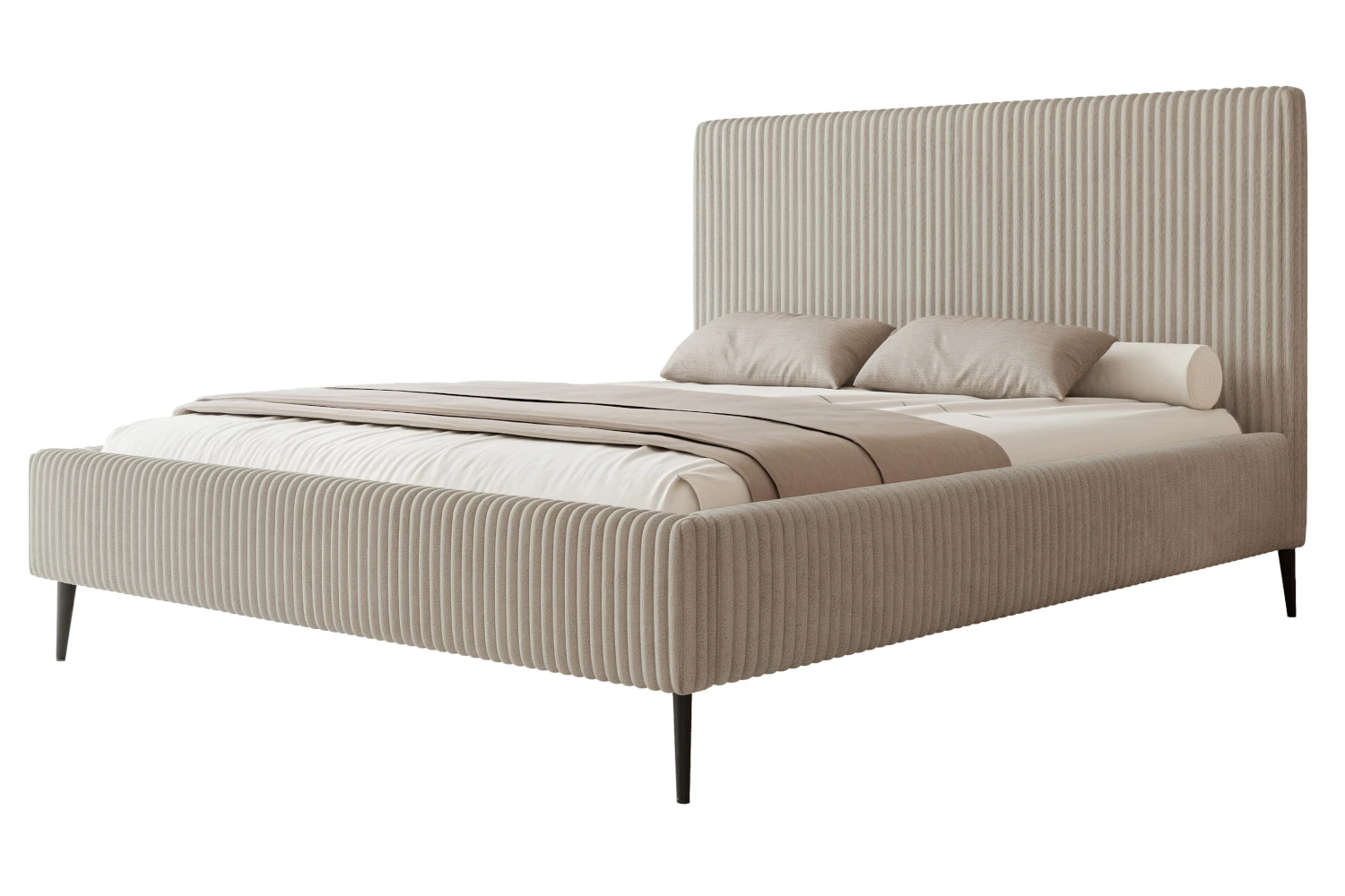Łóżko tapicerowane na nóżkach z pojemnikiem na pościel i stelażem Luxo Szampański