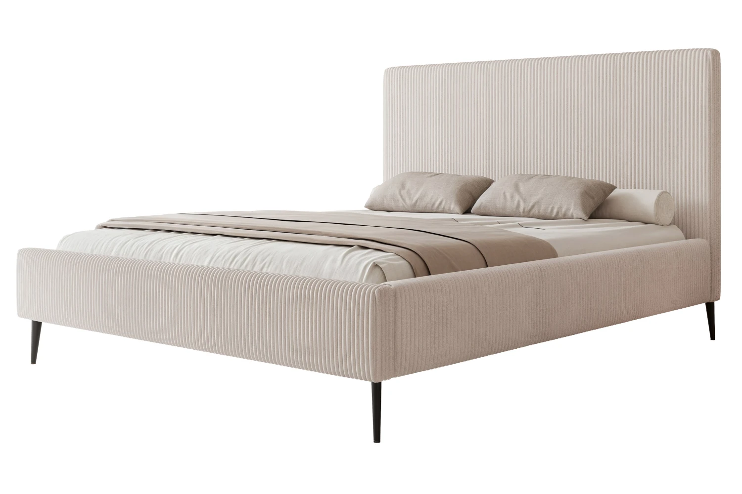 Łóżko tapicerowane na nóżkach z pojemnikiem na pościel i stelażem Luxo Waniliowy