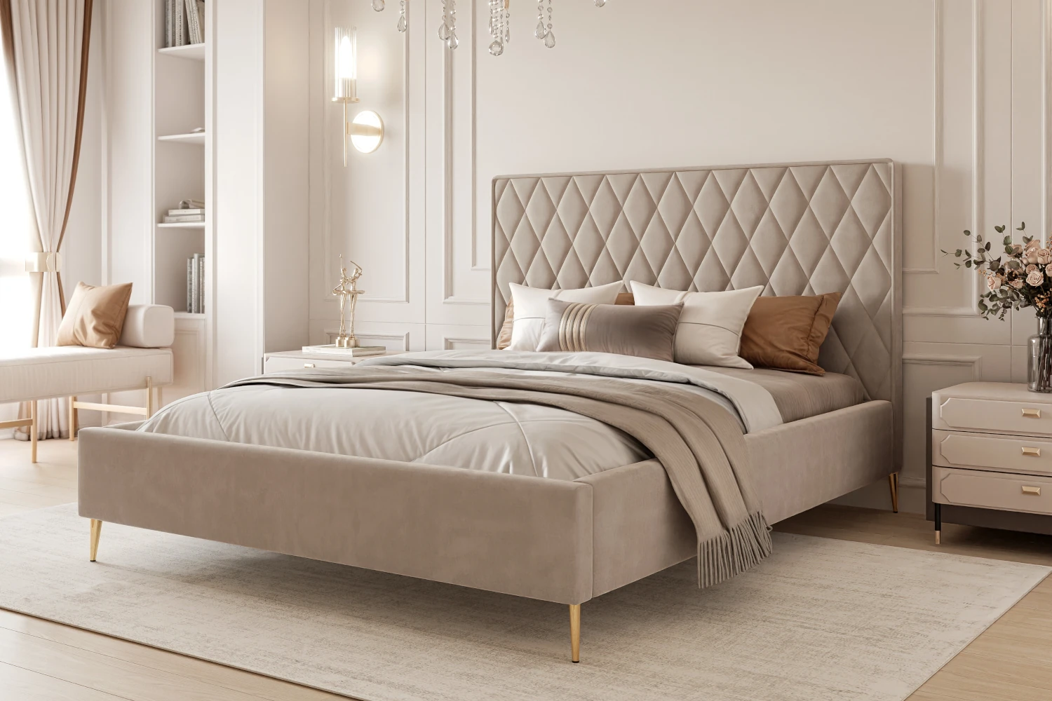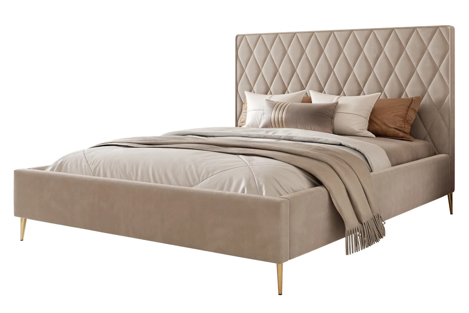Łóżko tapicerowane z nóżkami i pojemnikiem na pościel Royal Szaro-beżowy