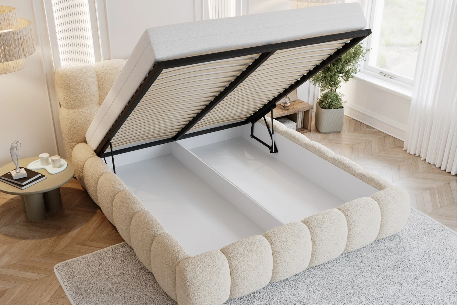Łóżko tapicerowane z pojemnikiem i metalowym stelażem Puffo - Quelle 92