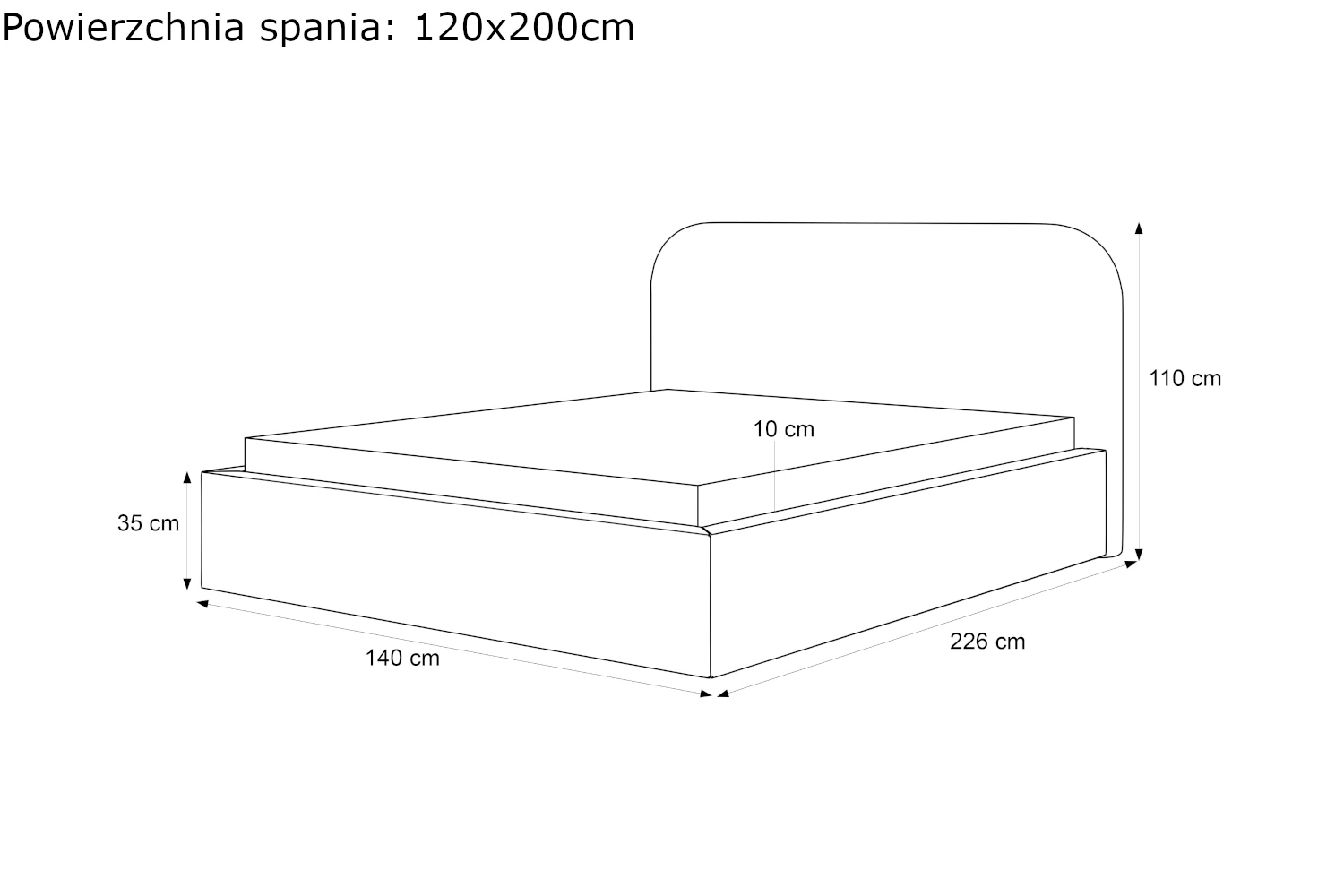 Korpus łóżka tworzy jednolitą, tapicerowaną ramę, która prezentuje się lekko, a jednocześnie jest stabilna i odporna na codzienne użytkowanie. Wnętrze skrzyni kryje obszerny pojemnik na pościel, idealny do przechowywania kołder, poduszek czy sezonowych tekstyliów. Dzięki podnoszonemu stelażowi dostęp do schowka jest wygodny, a powierzchnia pod materacem zostaje maksymalnie wykorzystana.